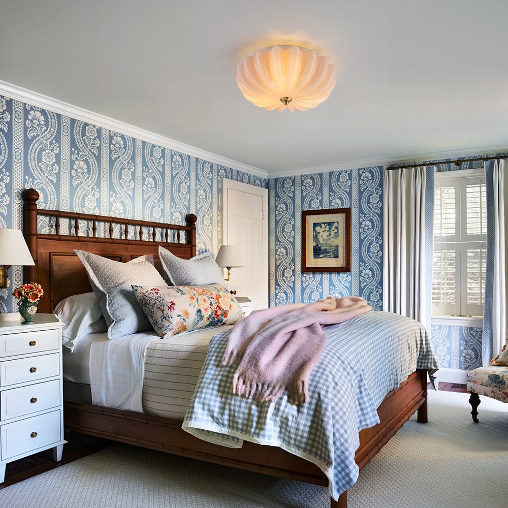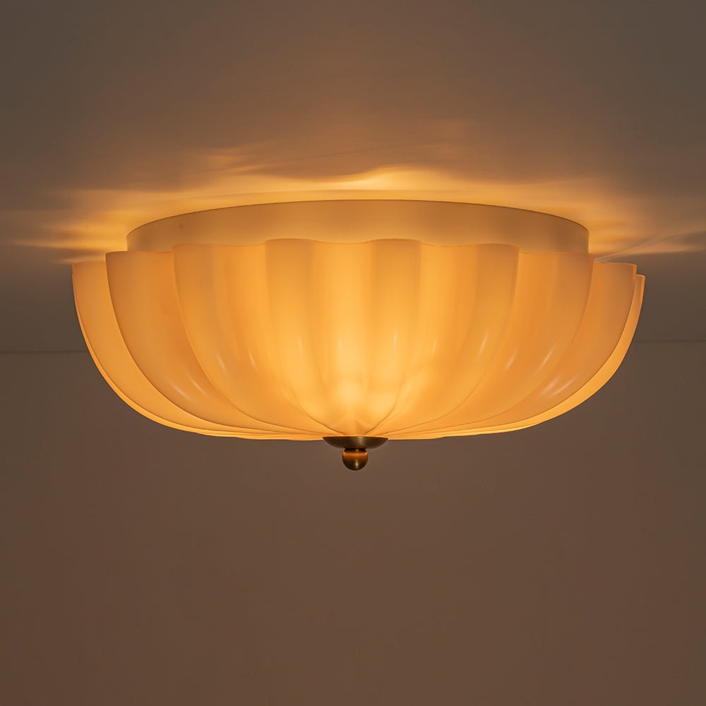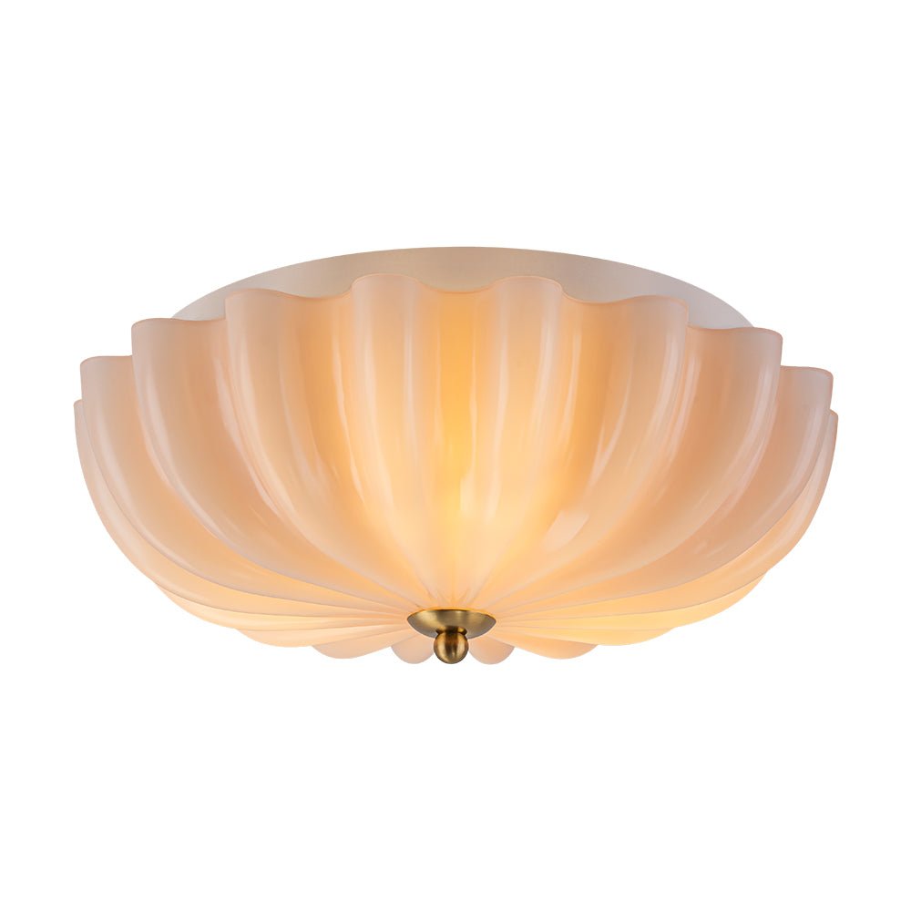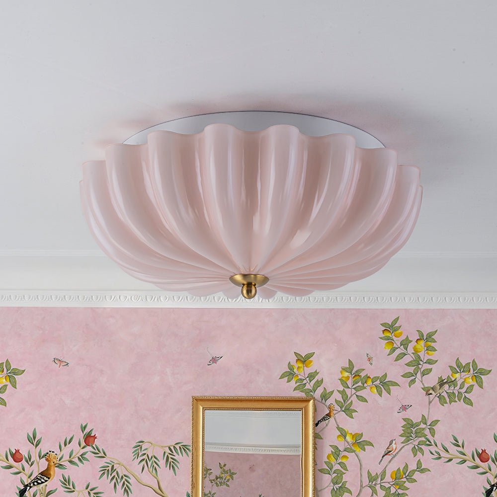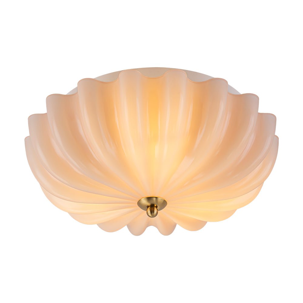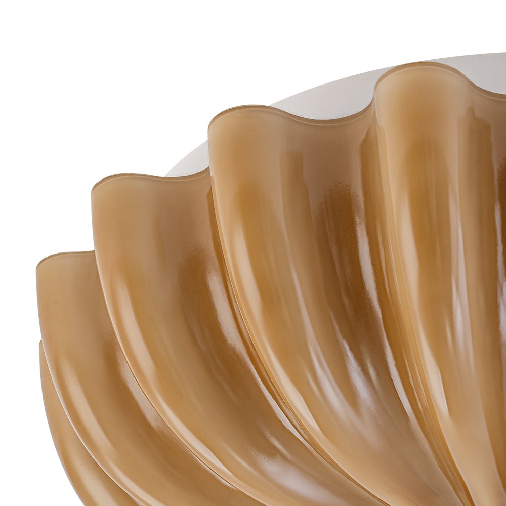 The mocha brown glass option offers a richer, grounded elegance. Deep and glossy with subtle translucence, this scalloped glass ceiling light evokes vintage charm and cozy sophistication, pairing beautifully with classic, eclectic, or softly modern interiors. When illuminated, it creates a warm, enveloping ambiance that feels intimate and reassuring.