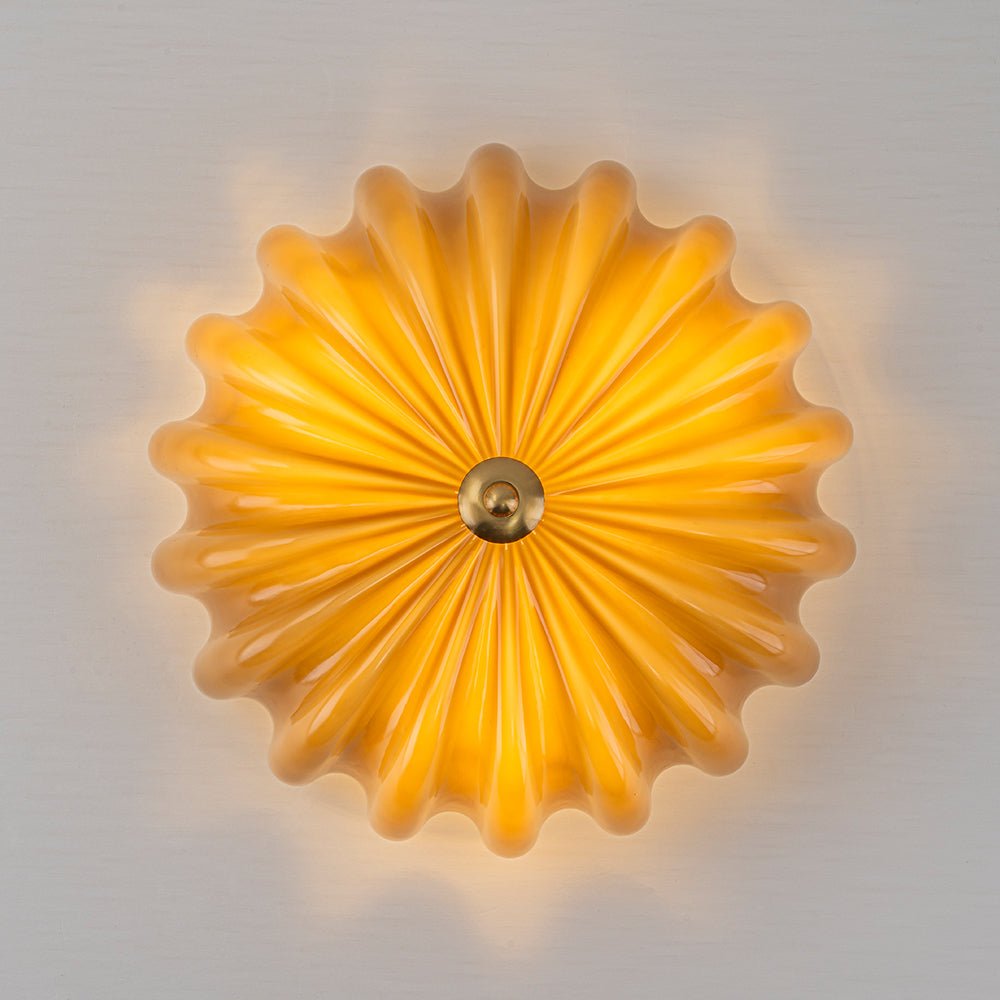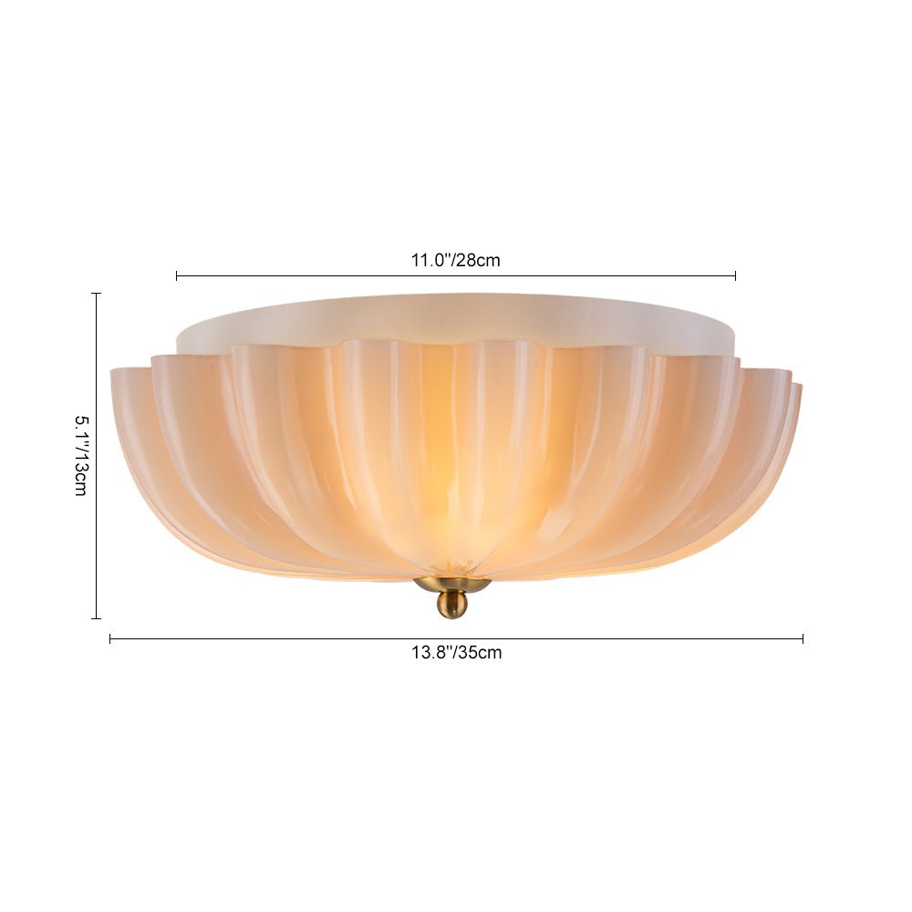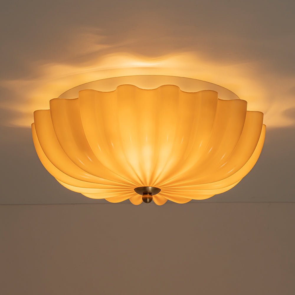 Like a flower captured in full bloom, this sculptural glass semi-flush ceiling light brings softness, warmth, and quiet wonder to your space. Its delicately pleated shade unfurls in gentle curves, crafted from glossy glass that enhances both form and glow.
