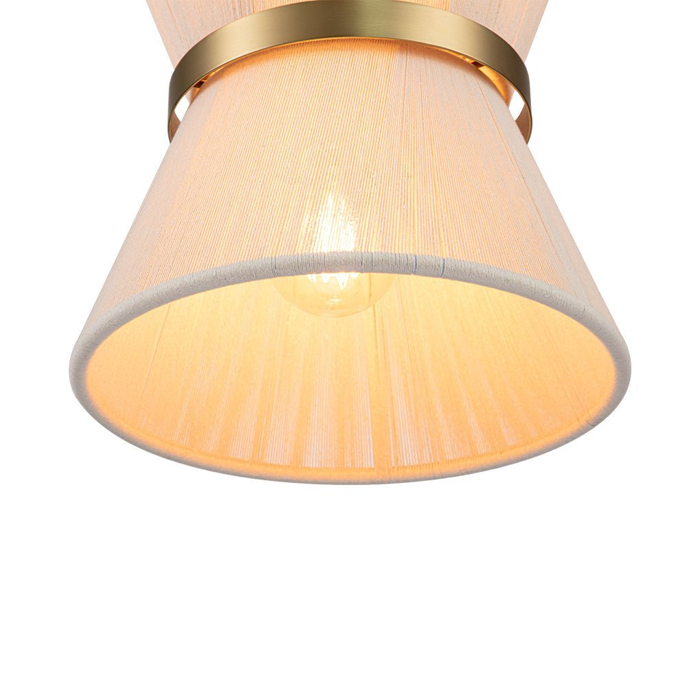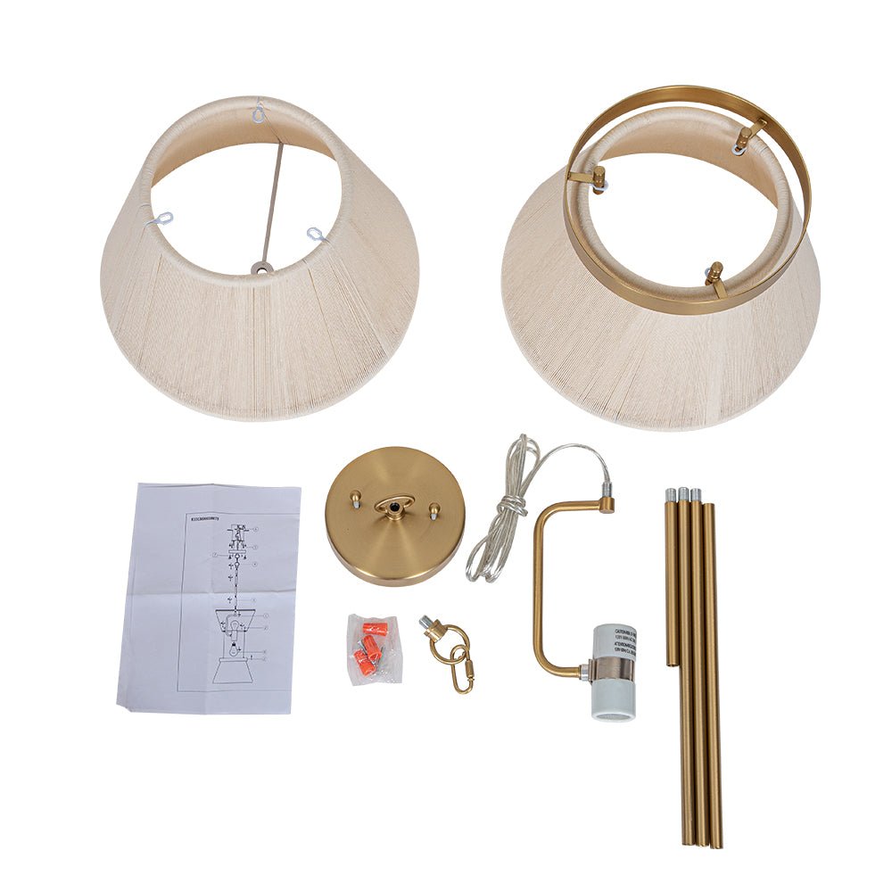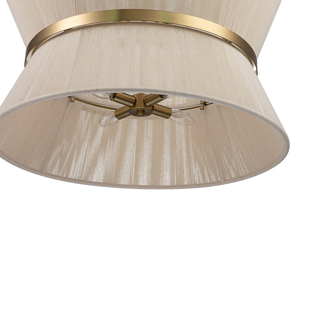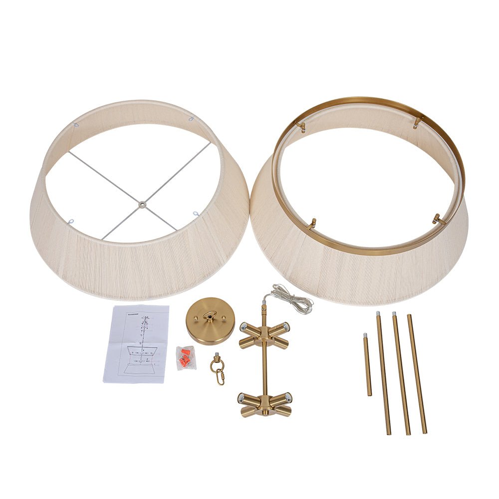 Two/Eight Lights • Drum Frame • Tiered Design • Beige Thread • Boho Style • Brass Finish • E12/E26 Bulbs (Not Included) • Hardwired • UL Listed
