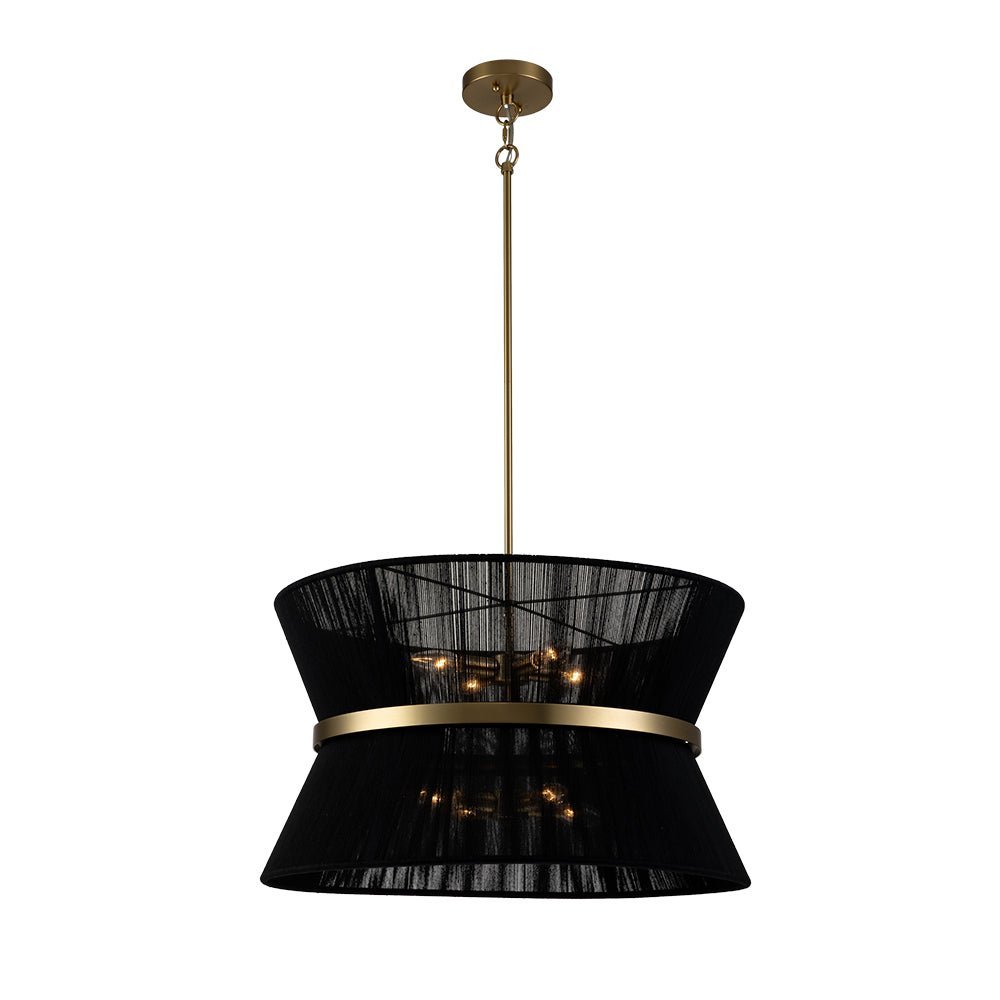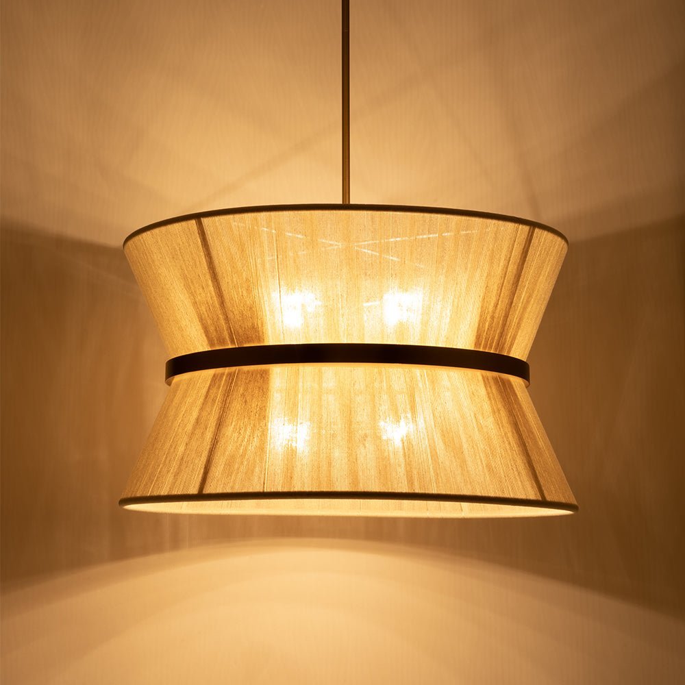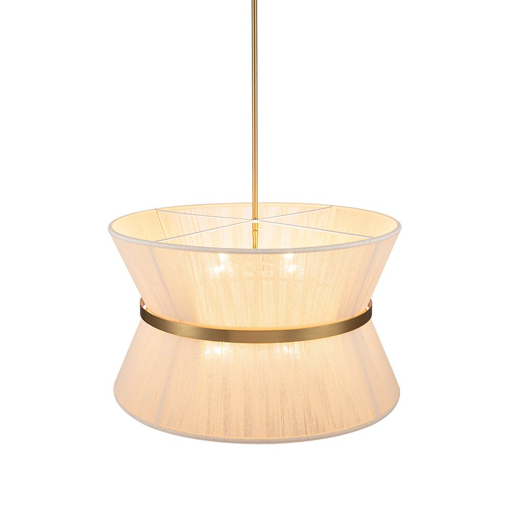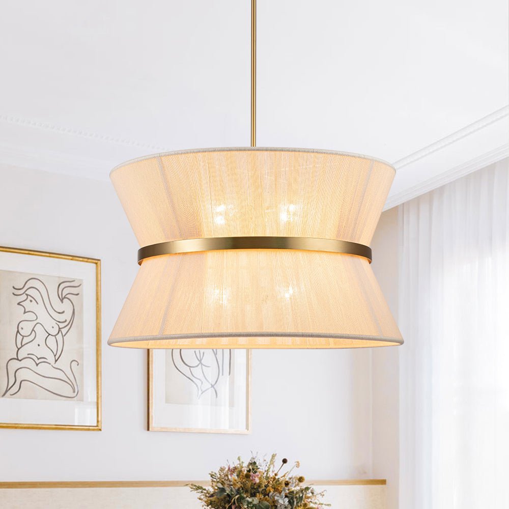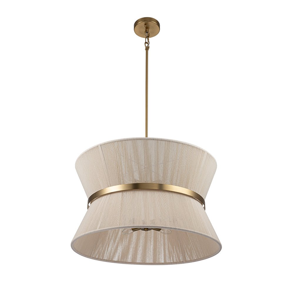 Two/Eight Lights • Drum Frame • Tiered Design • Beige Thread • Boho Style • Brass Finish • E12/E26 Bulbs (Not Included) • Hardwired • UL Listed