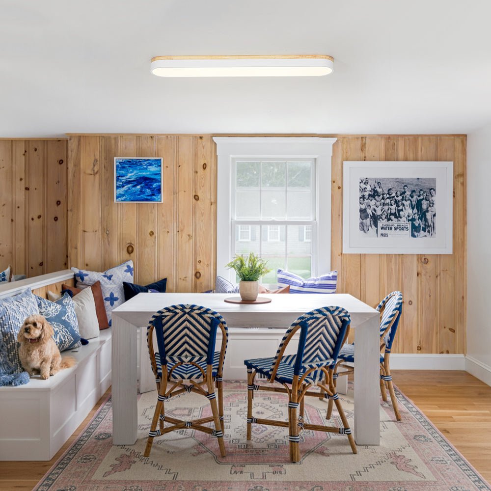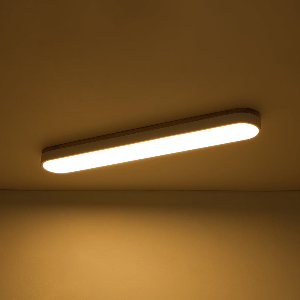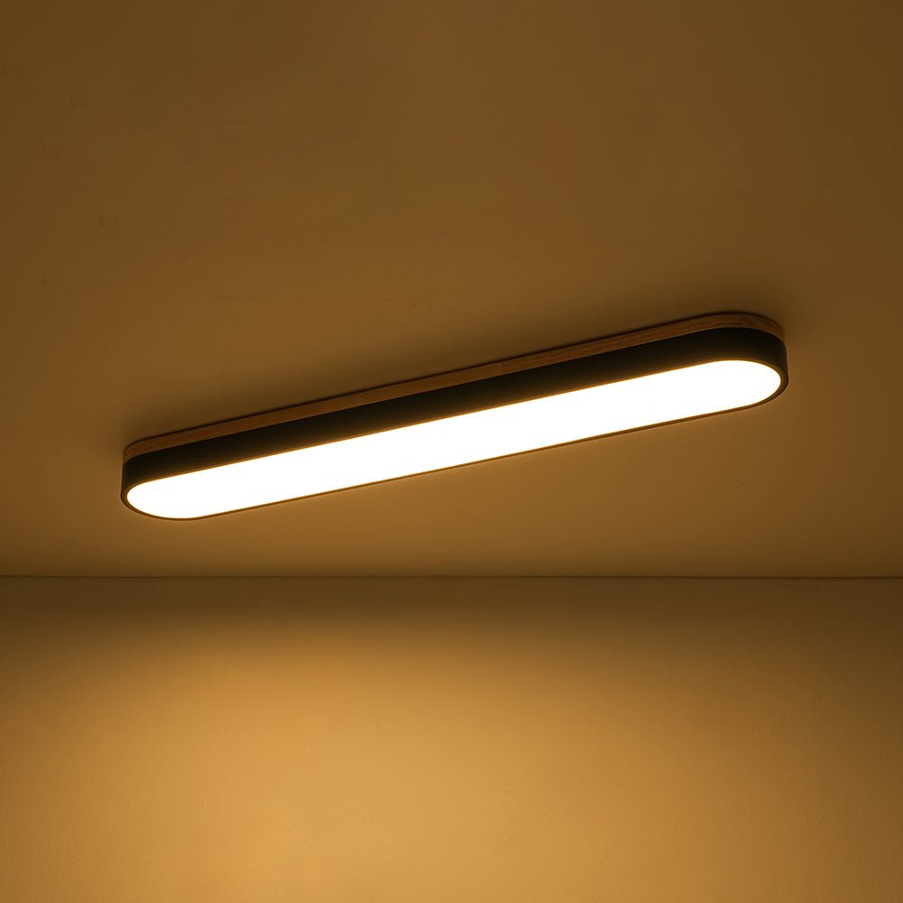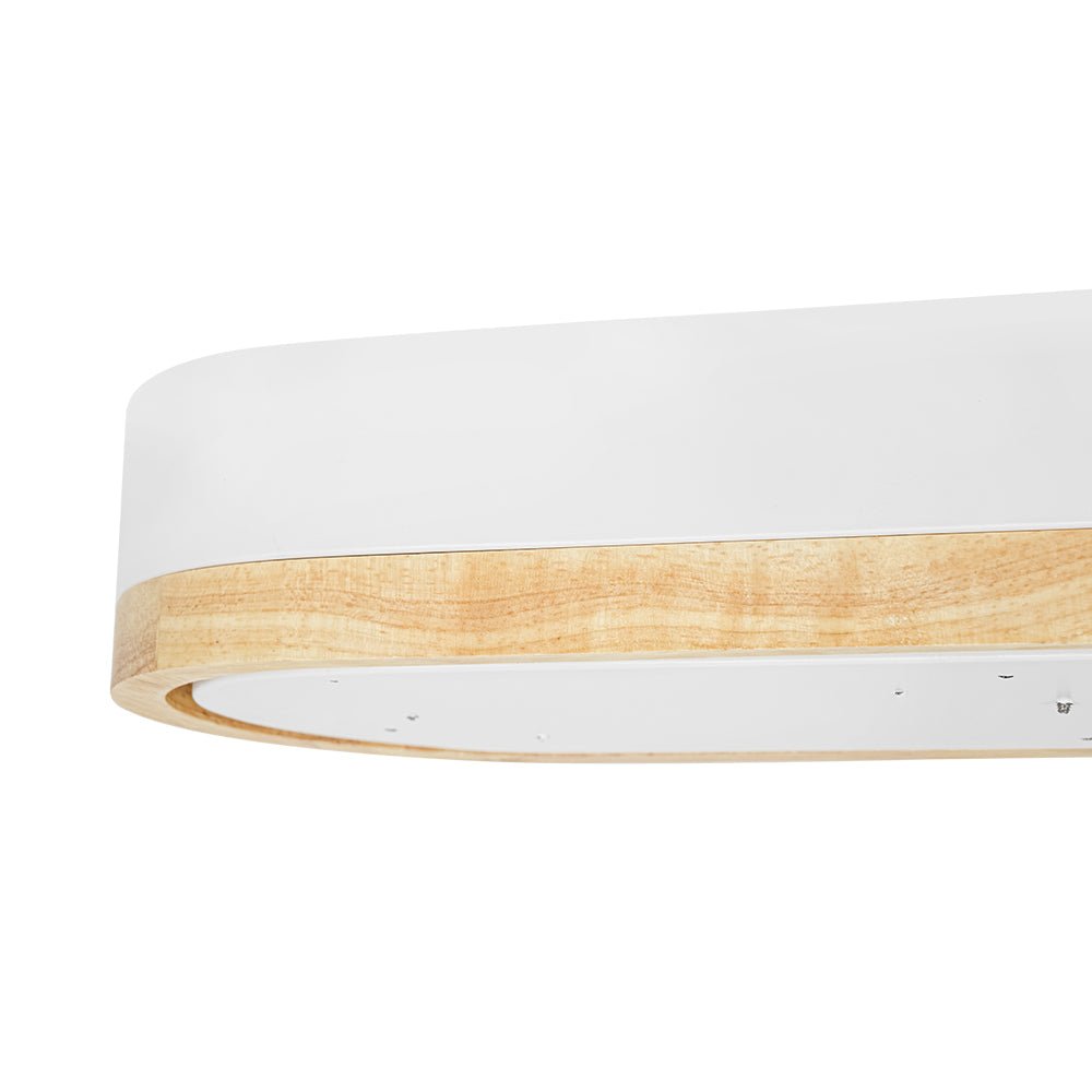 This LED flush mount ceiling light features a sleek, minimalist design with a streamlined oval frame, available in a matte black or white finish for a clean, modern look. The natural wooden base add a touch of modern farmhouse elegance, making this LED light fixture ideal for both contemporary or traditional interior.