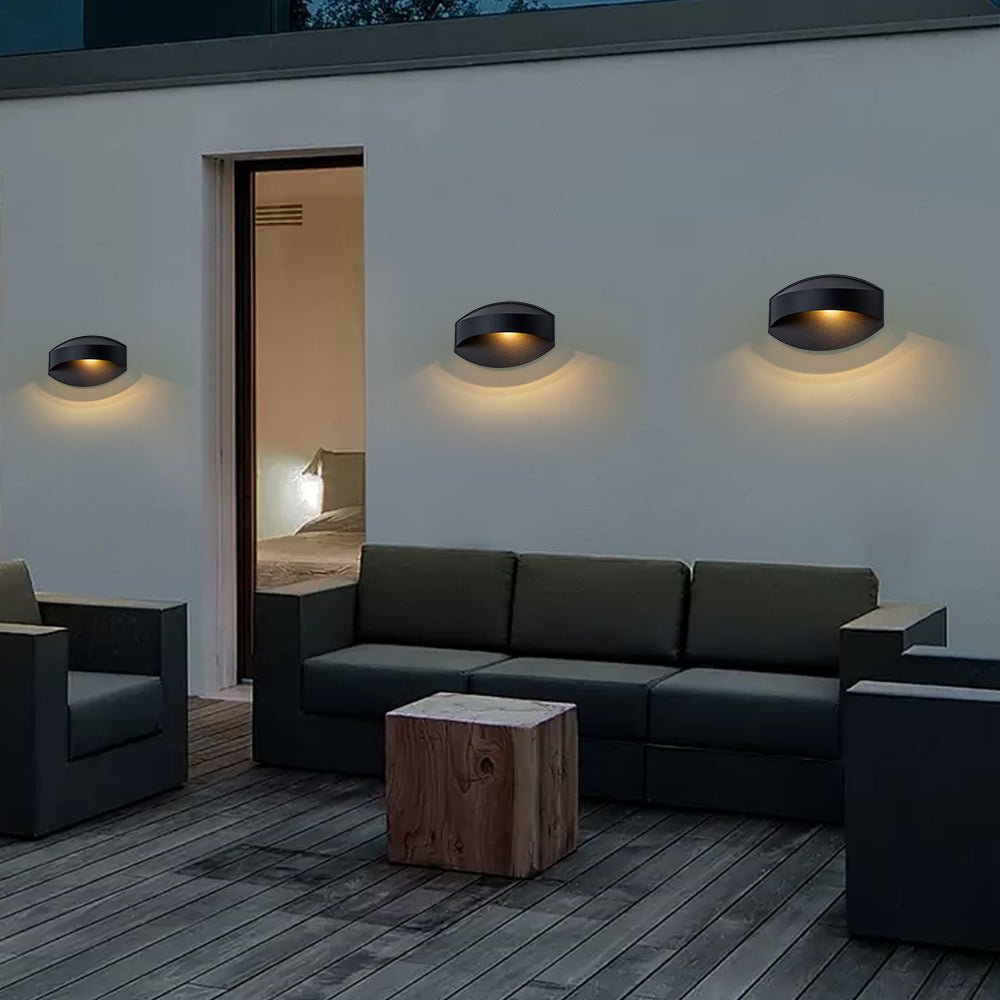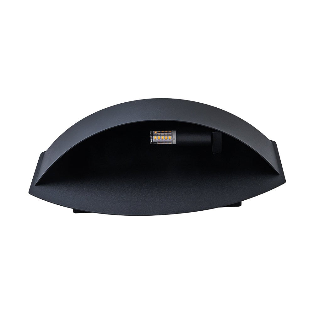 Brighten your outdoor décor with this sleek, single metal wall sconce, blending minimalist aesthetics with durable functionality. Featuring a helmet-shaped flat oval shade in sanded black iron, the fixture accommodates one G9 bulb (not included), casting a warm, focused glow downward. Crafted from high-quality iron and equipped with a G9 ceramic socket, this compact outdoor light is IP23-rated, providing protection against light moisture for reliable performance. Ideal for porches, patios, entryways, or garden walls, this iron outdoor wall lamp combines clean lines with functional illumination to enhance any exterior space.