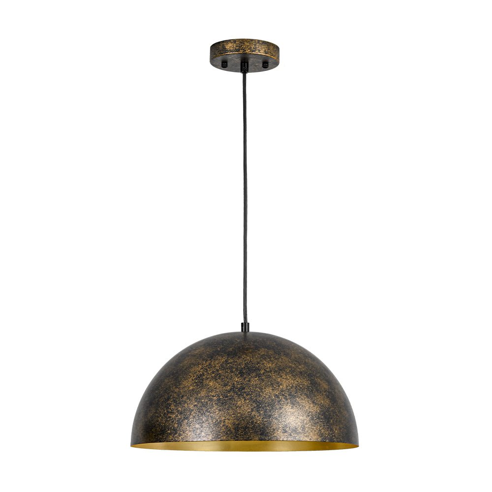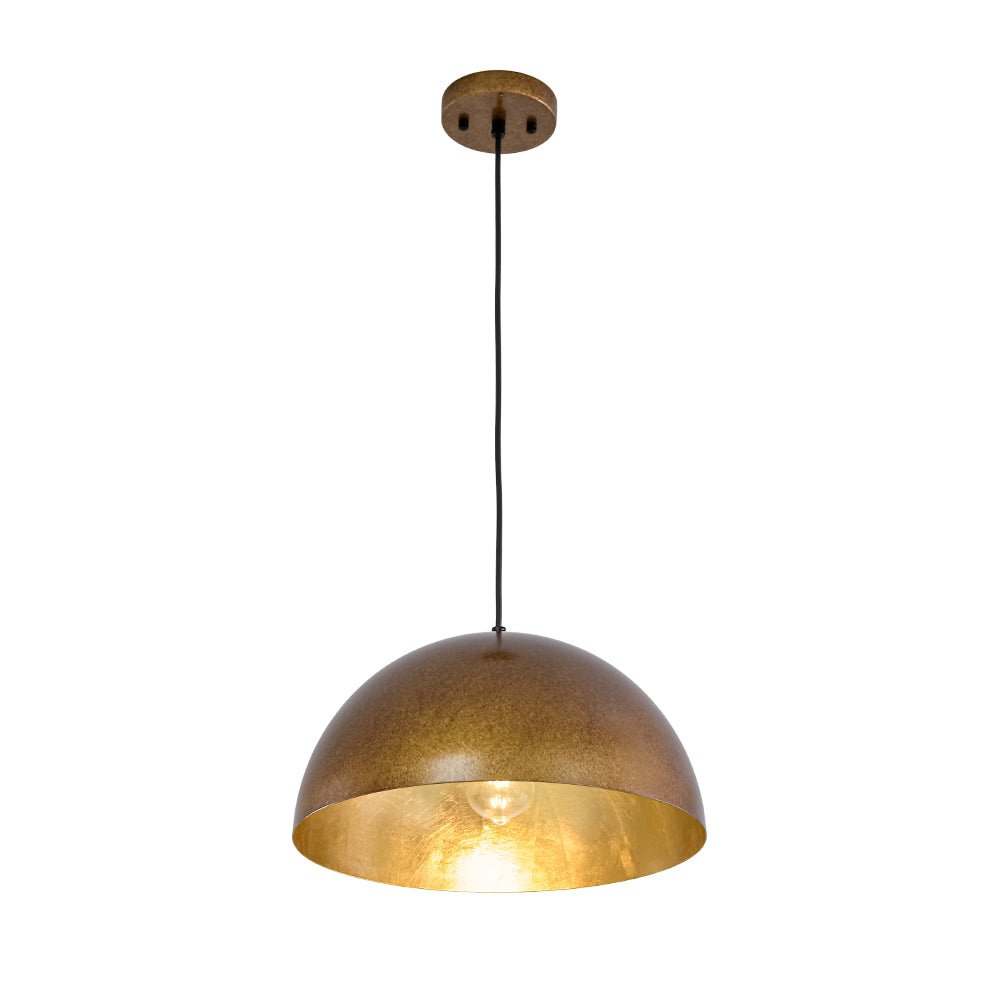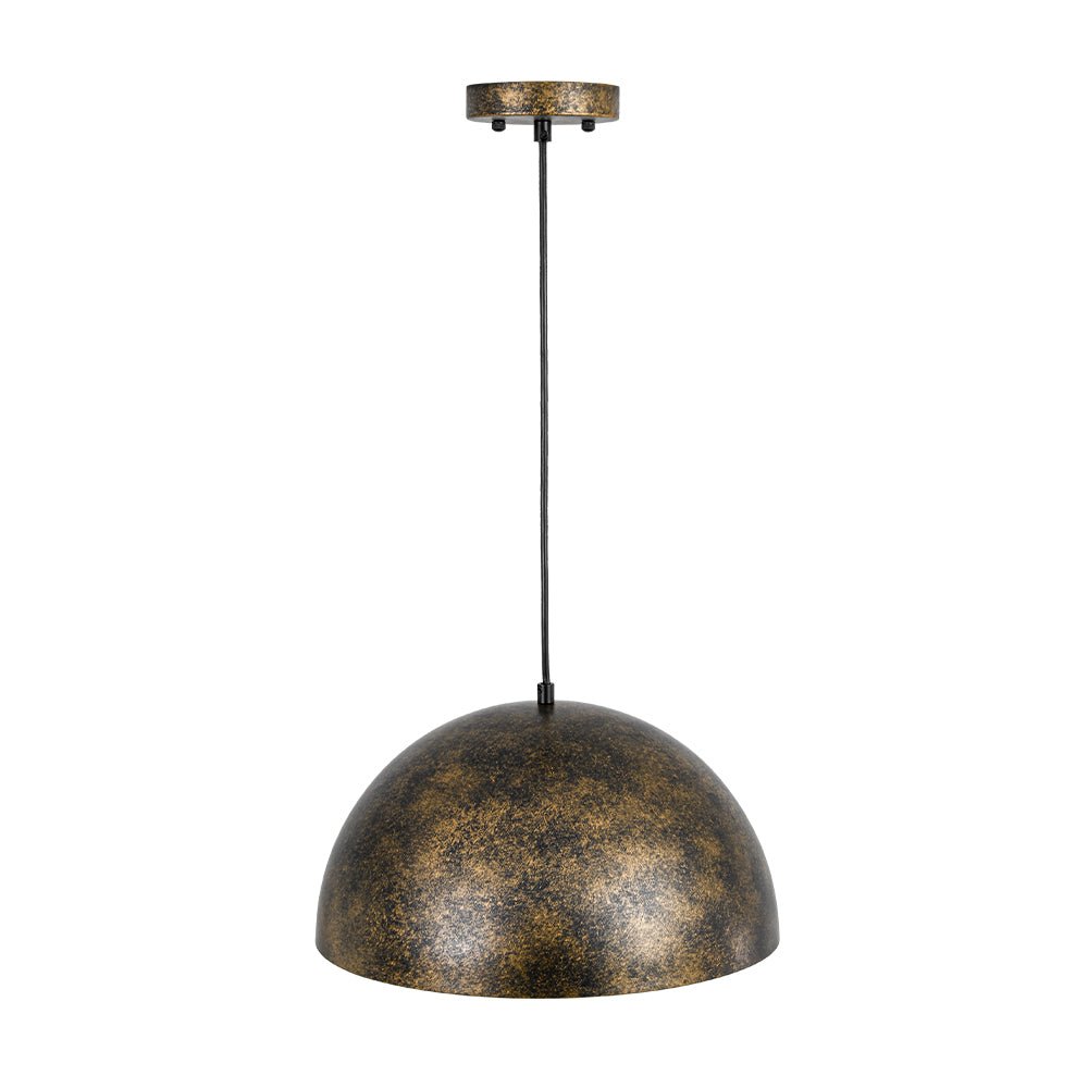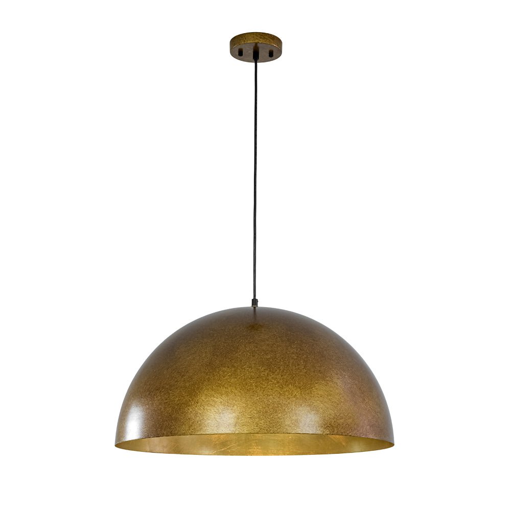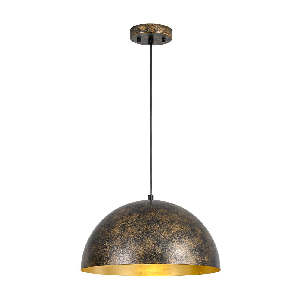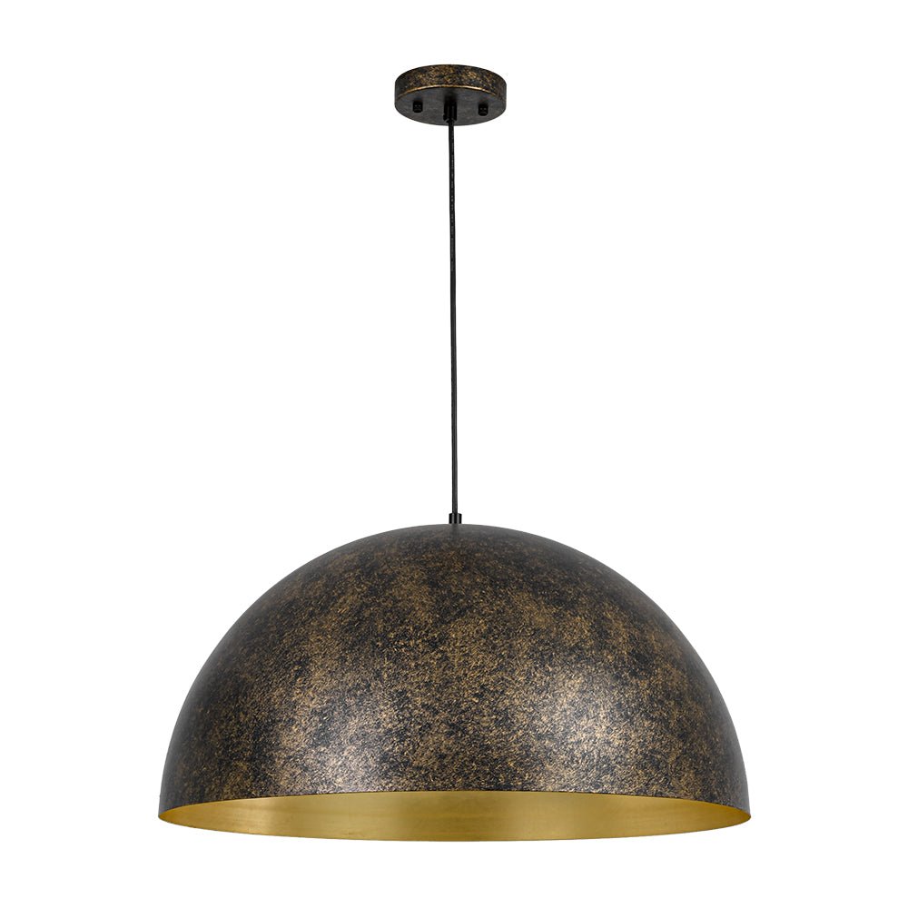 Add dramatic flair and rustic elegance to your space with this oversized iron dome pendant light. The striking exterior features a richly textured brown rust finish, evoking the natural beauty of aged, weathered metal. Its artisan-crafted surface blends earthy browns with antique gold undertones, giving the fixture a warm, timeworn character that suits industrial, farmhouse, or vintage-inspired interiors.