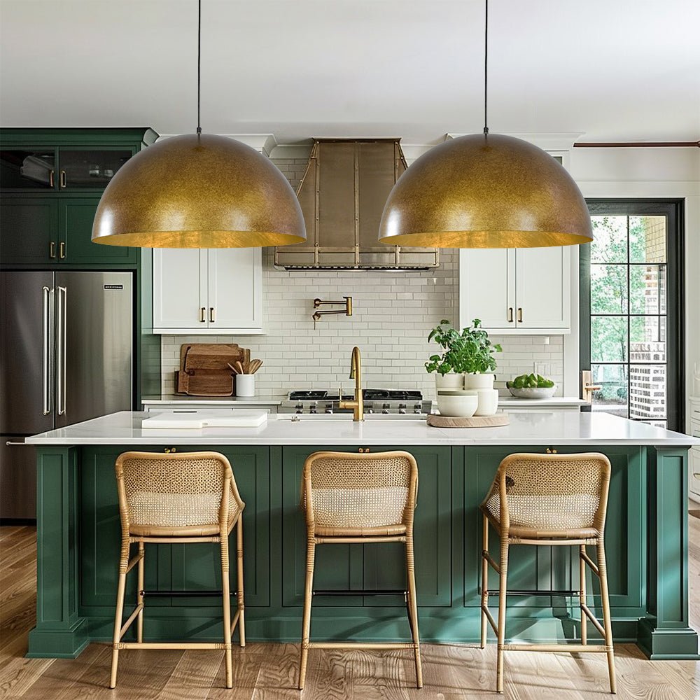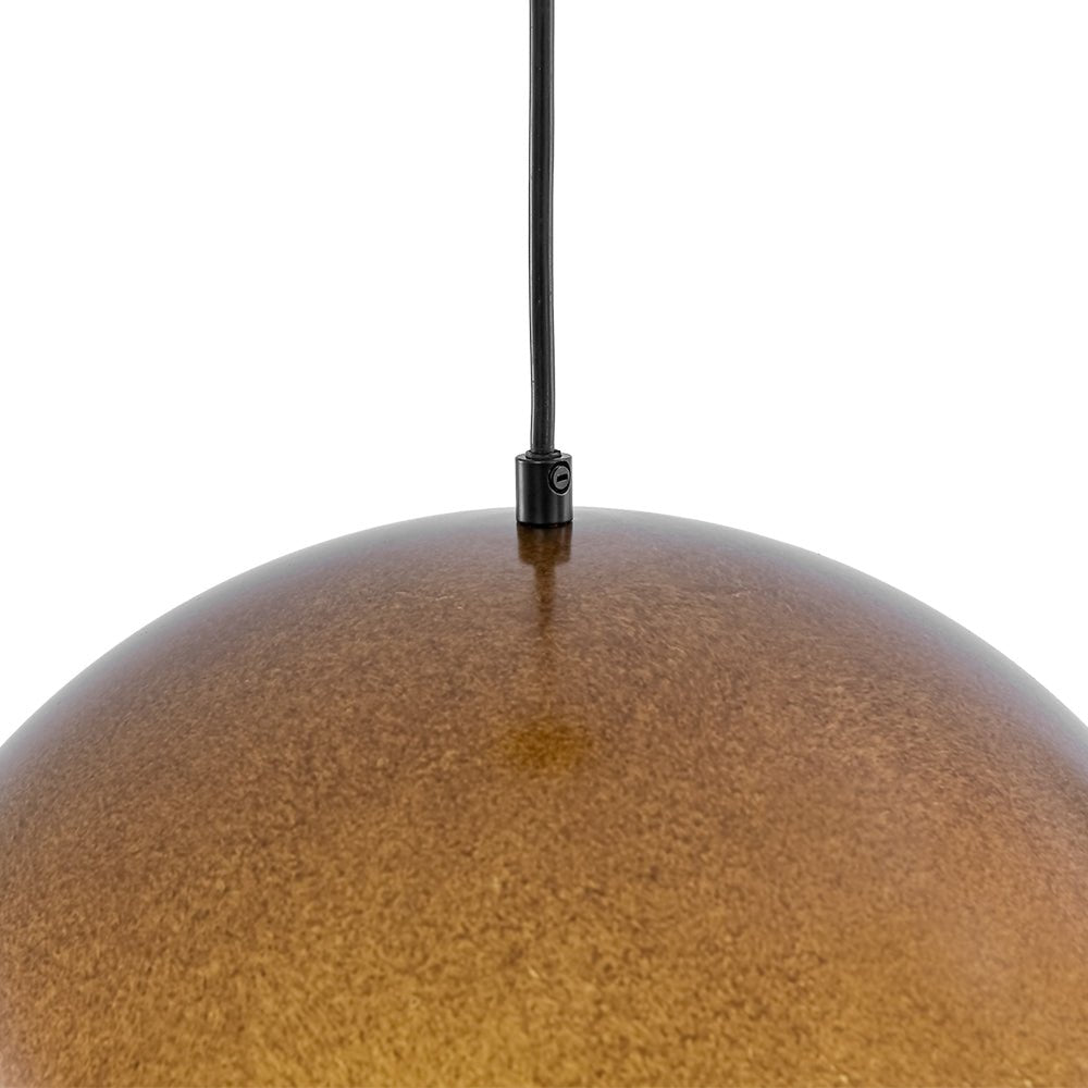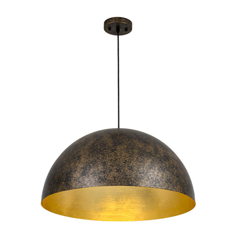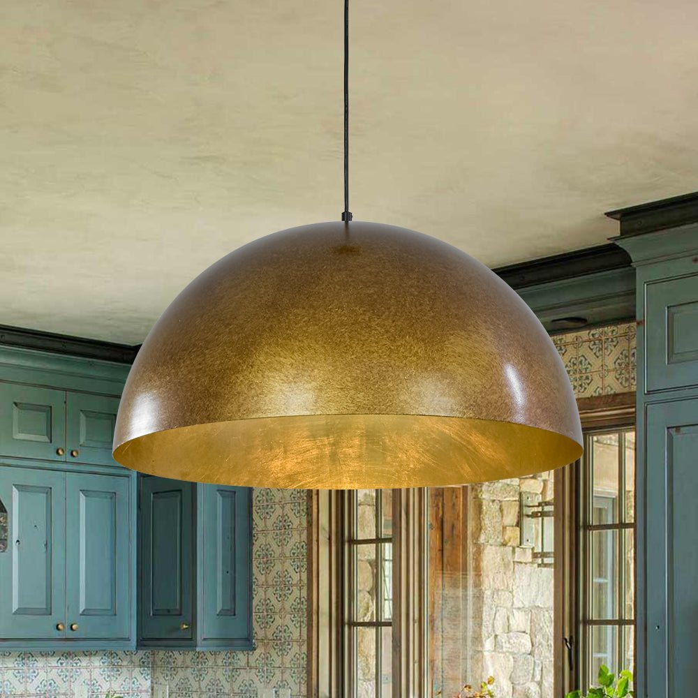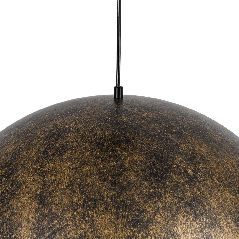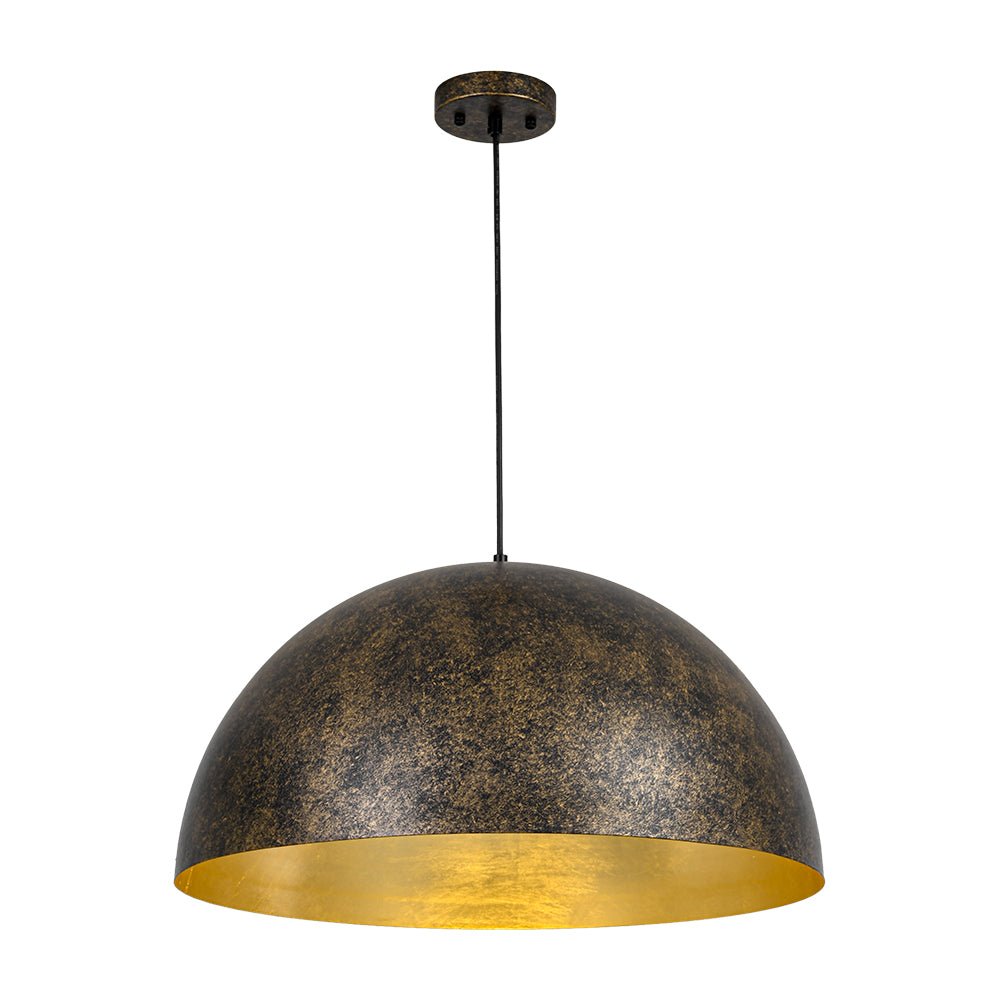 Add dramatic flair and rustic elegance to your space with this oversized iron dome pendant light. The striking exterior features a richly textured brown rust finish, evoking the natural beauty of aged, weathered metal. Its artisan-crafted surface blends earthy browns with antique gold undertones, giving the fixture a warm, timeworn character that suits industrial, farmhouse, or vintage-inspired interiors.