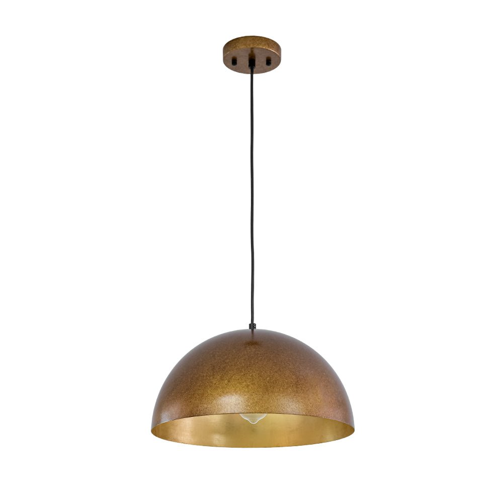 One Light • Oversized Style • Iron Dome Shade • Brown Rust Exterior • Gold Foiled Interior • Industrial Luxe • E26 Medium-Base Bulb (Not Included) • Hardwired • ETL