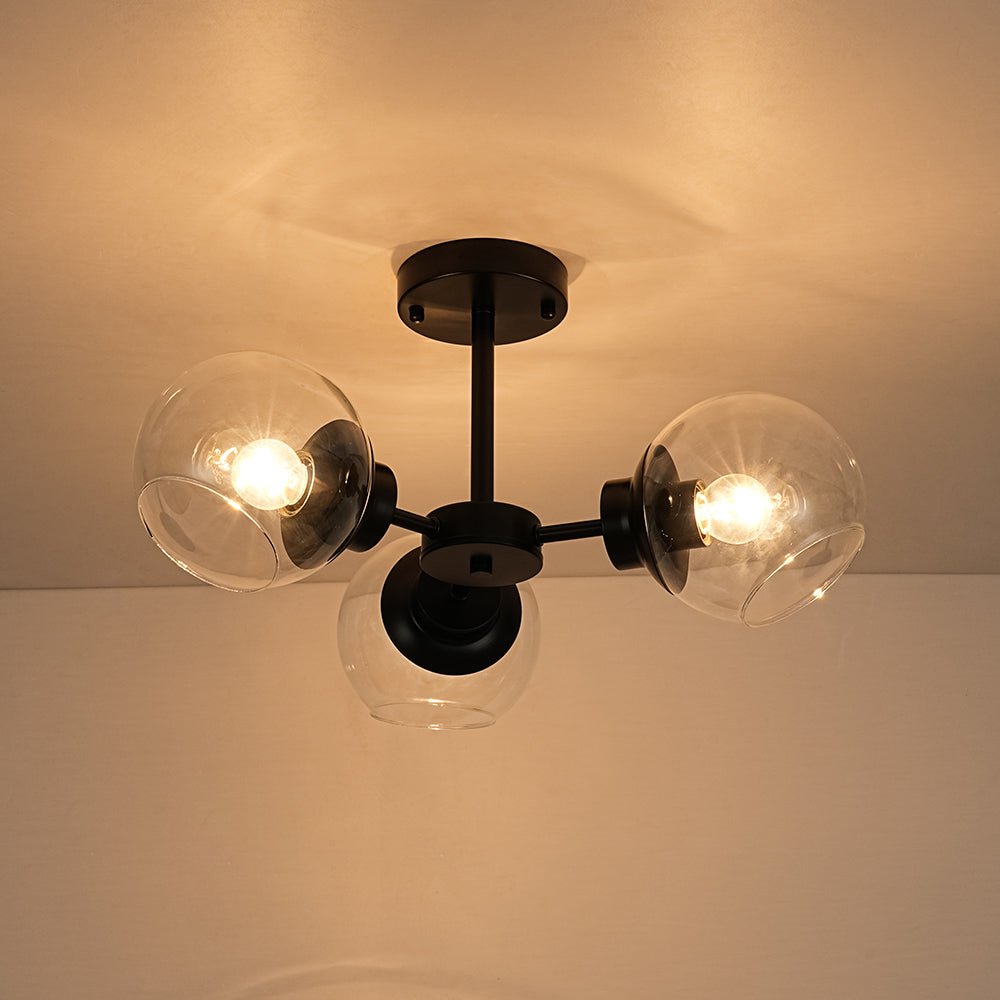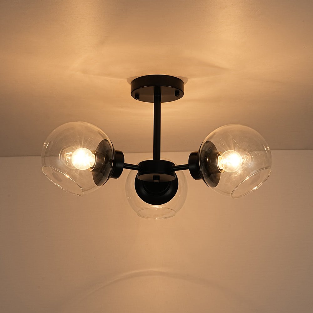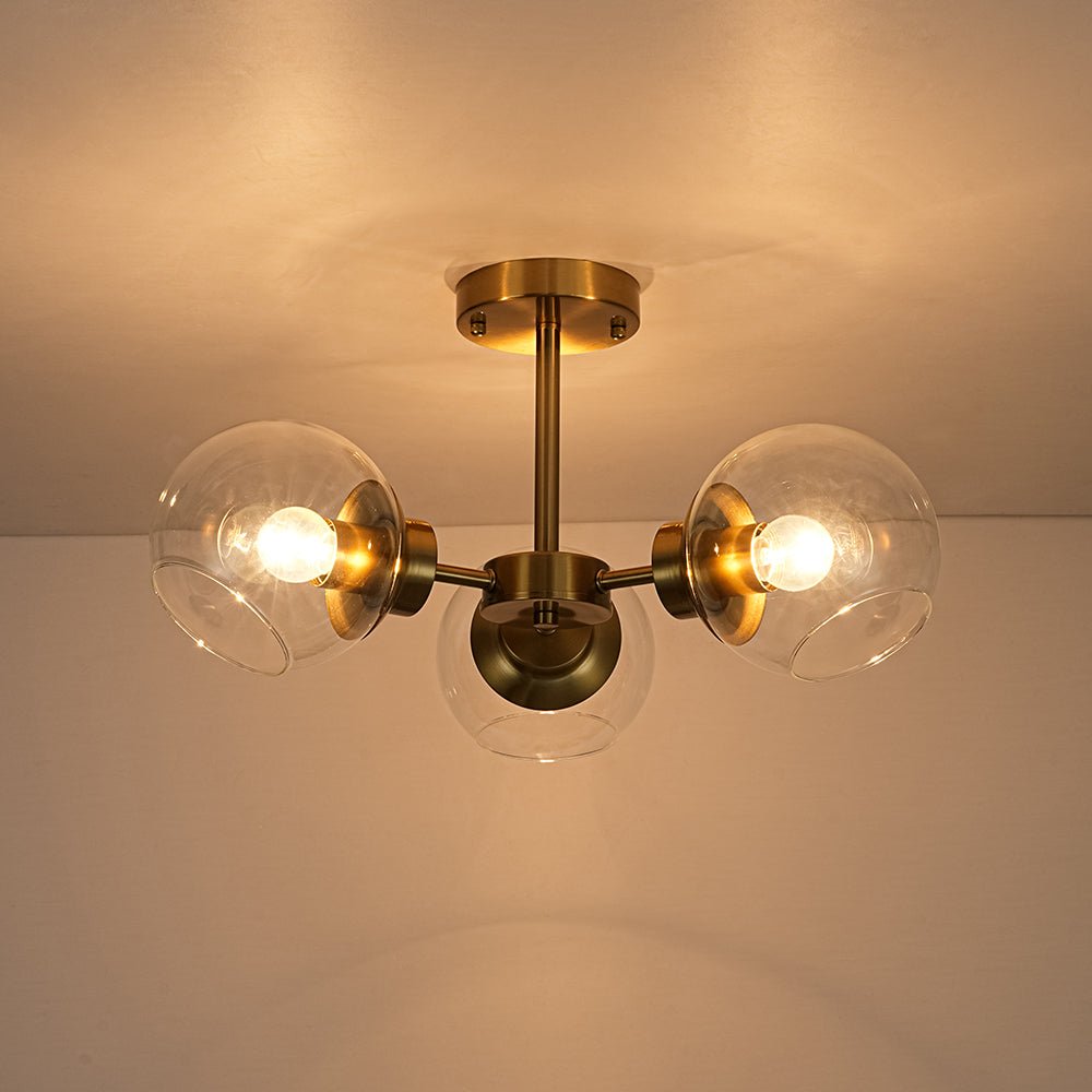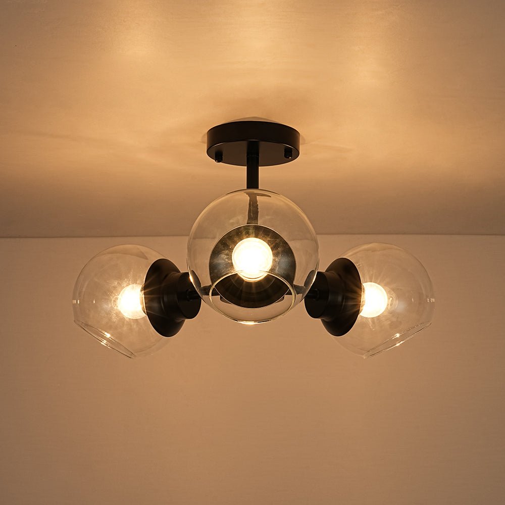 - 3-Light Glass Globe Semi Flush Mount