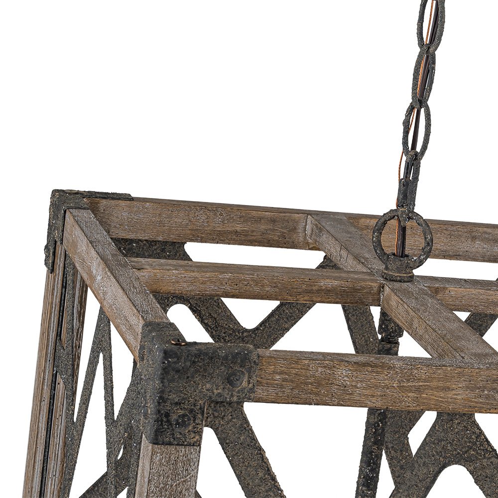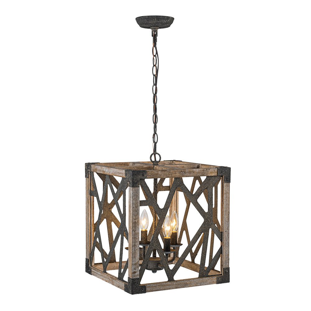 4-Light Distressed Wooden Square Cage Pendant Light