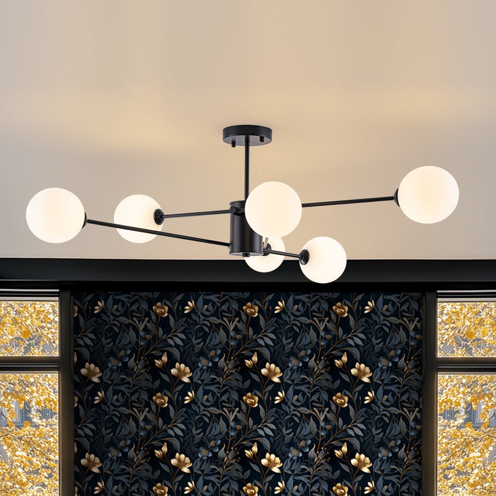 6-Light Opal Glass Globe Linear Sputnik Semi Flush