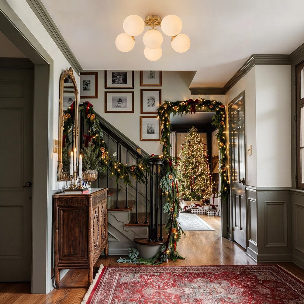 A luxurious blend of classic Sputnik and elegant bubble design, this semi flush chandelier showcases gracefully curved arms snaking from the center base, cradling enchanting opal glass globes that bloom like a romantic cartoon firework. When illuminated, this 11-light Sputnik light fixture emits warm, serene lighting with elegant ambiance through the milky white glass bubbles and the luxe brass frame. Perfect for adding artistic charm and sophisticated beauty to your home decor, this frosted bubble semi flush mount enhances any living room, dining room, bathroom, entryway, bedroom, or lobby.