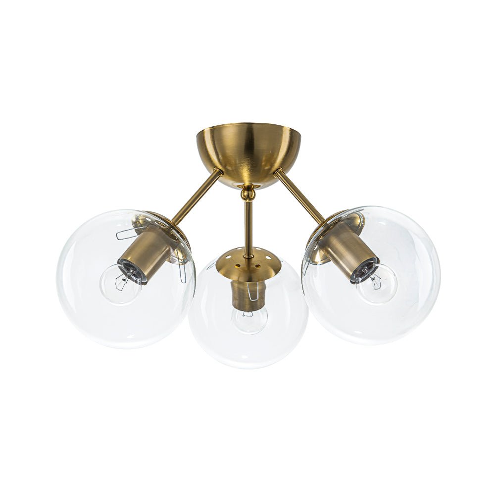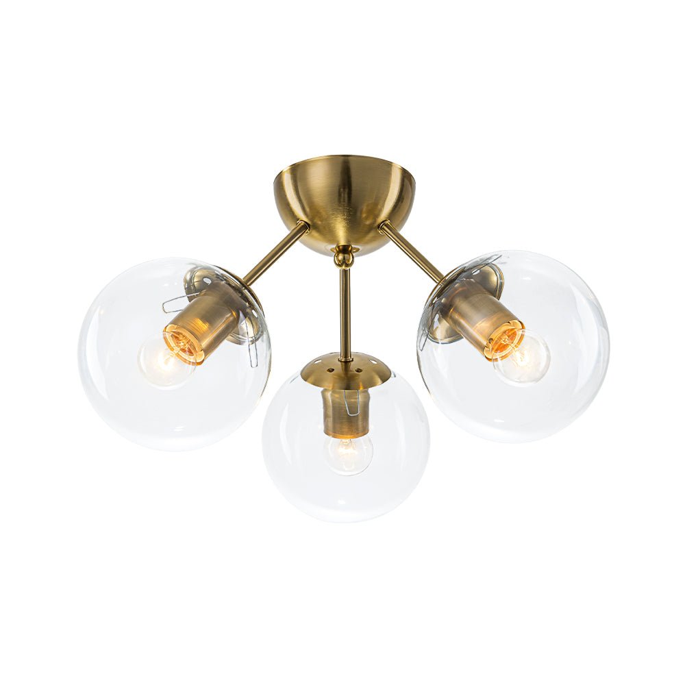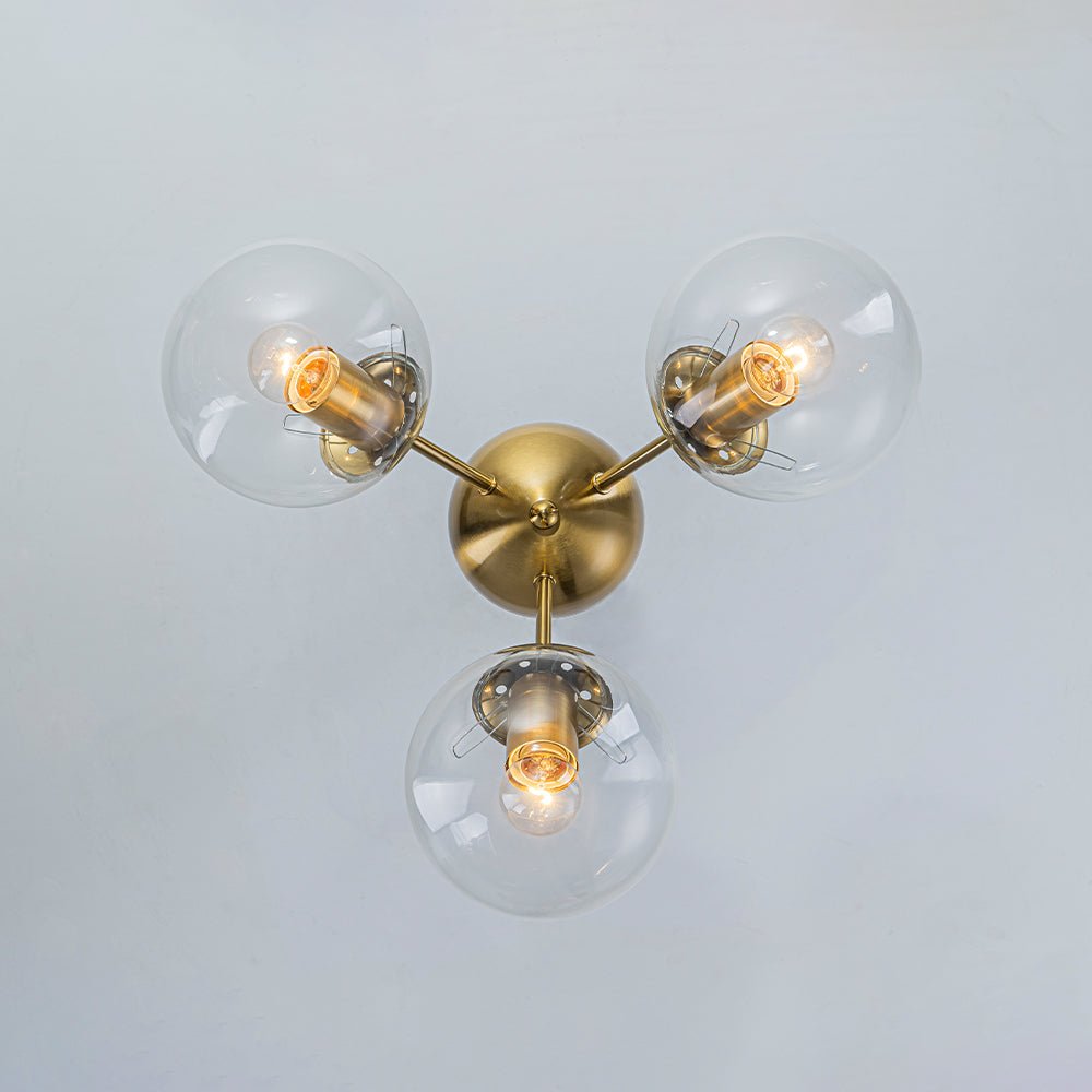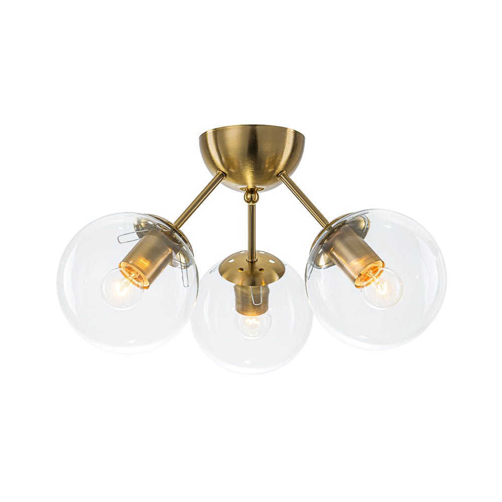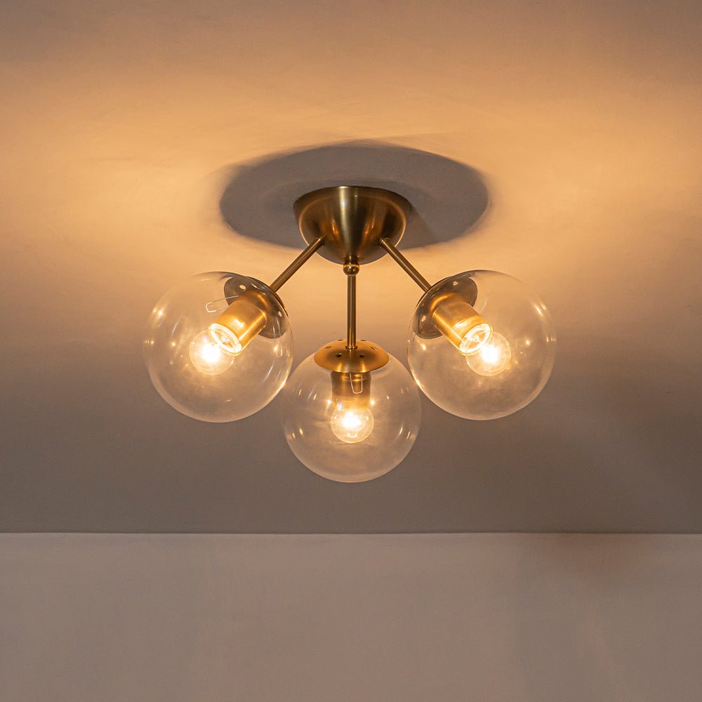 Brass Mid-Century 3-Light Glass Globe Semi Flush Mount
