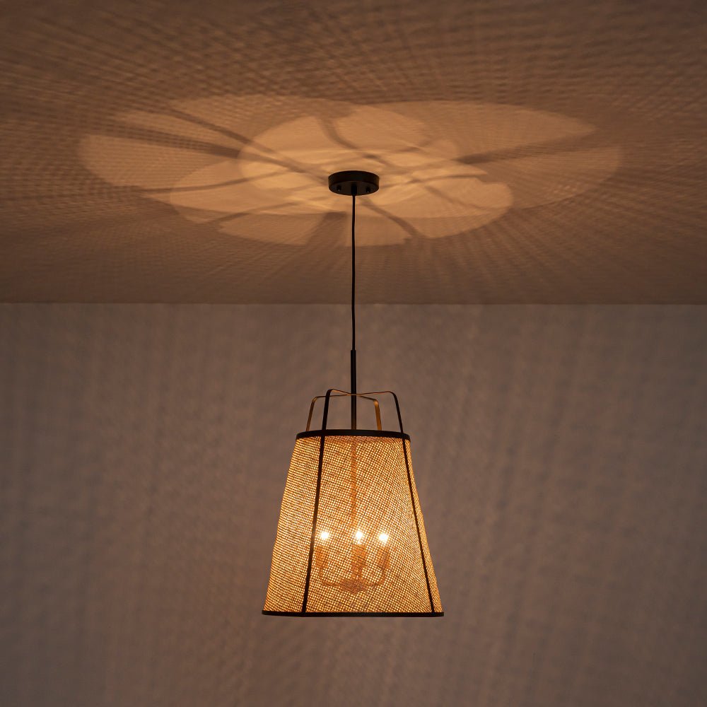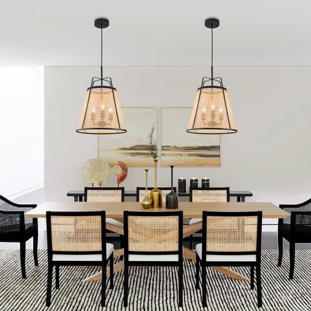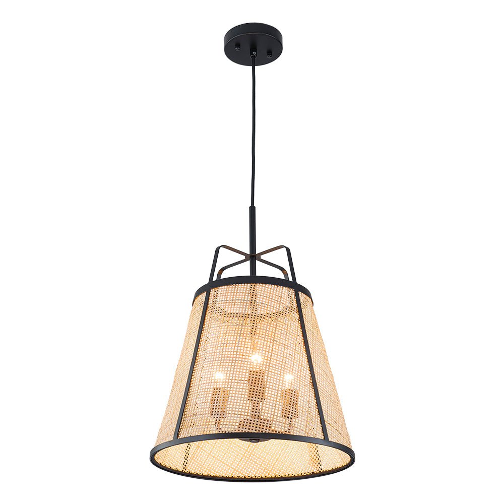 • 3-Light Coastal Rattan Conical Cage Pendant