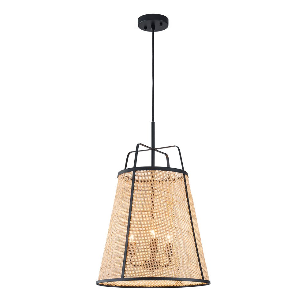 Three/Five Lights • Open Tapered Lantern • Natural Brown Rattan • E26 Bulbs (Not Included) • Matte Black Finish • Hardwired • UL Listed/ETL