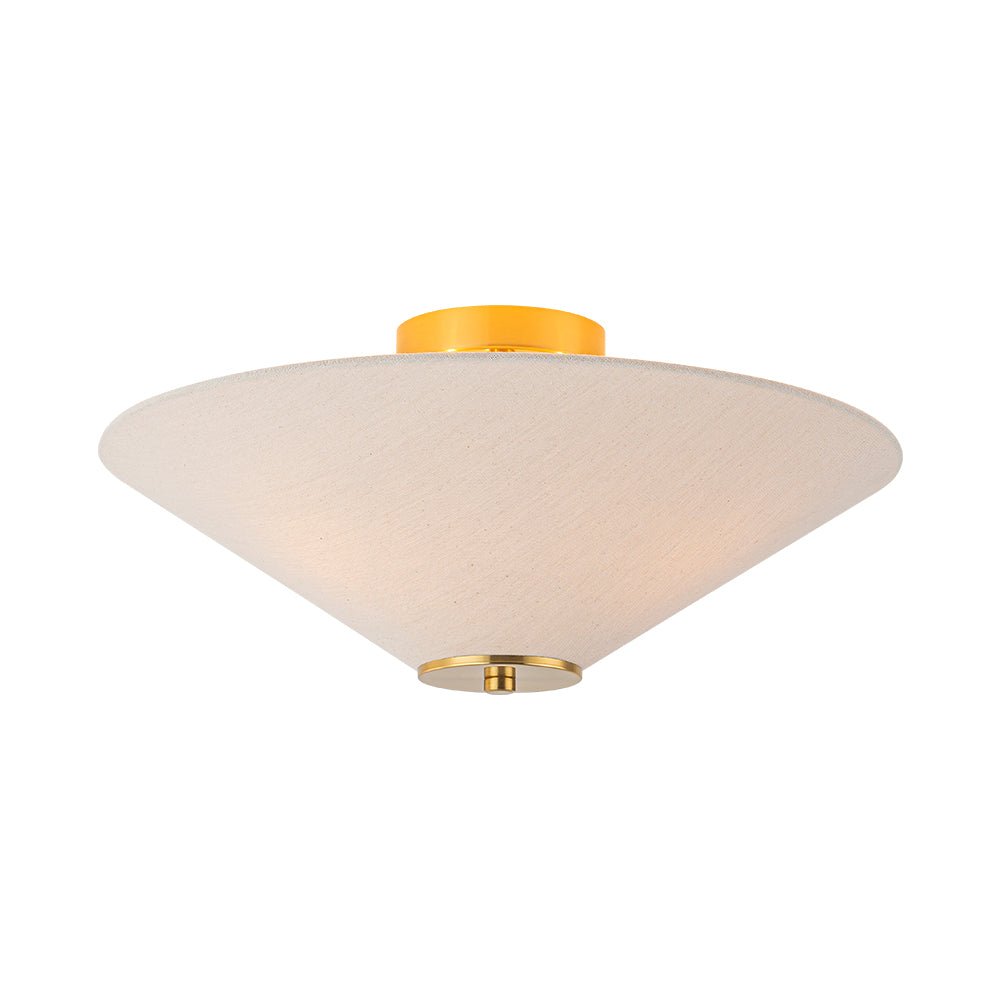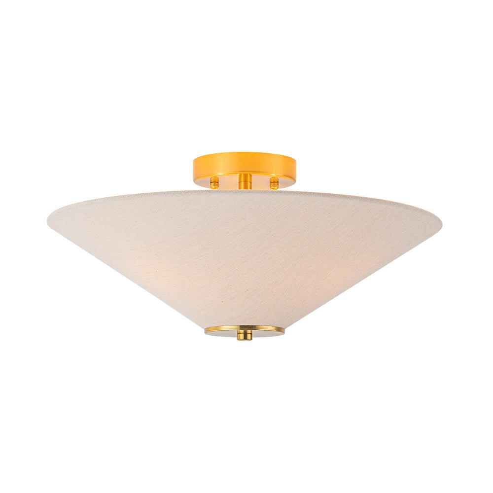 French Country Ivory Linen Conical Cage Semi Flush Mount