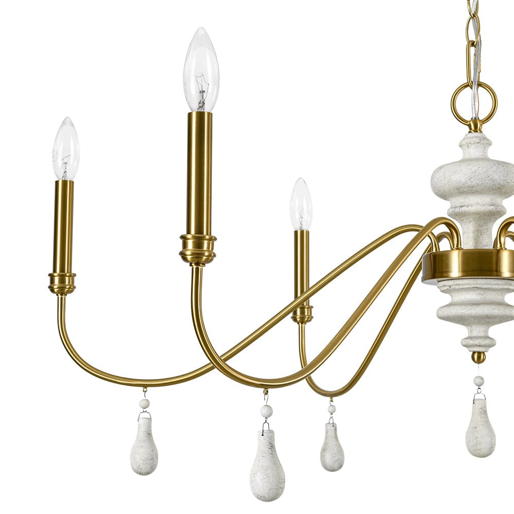 French Country White Wood Brass Iron Candle Chandelier
