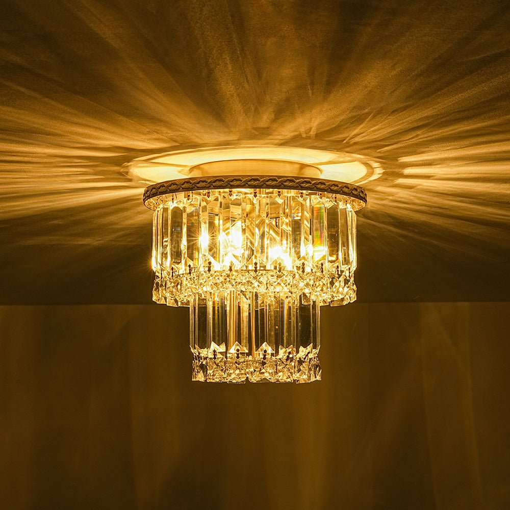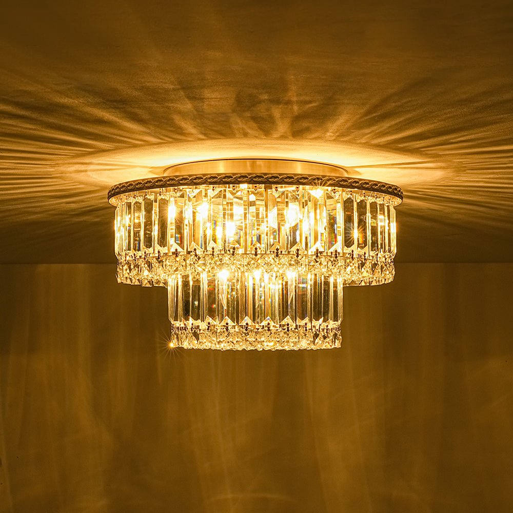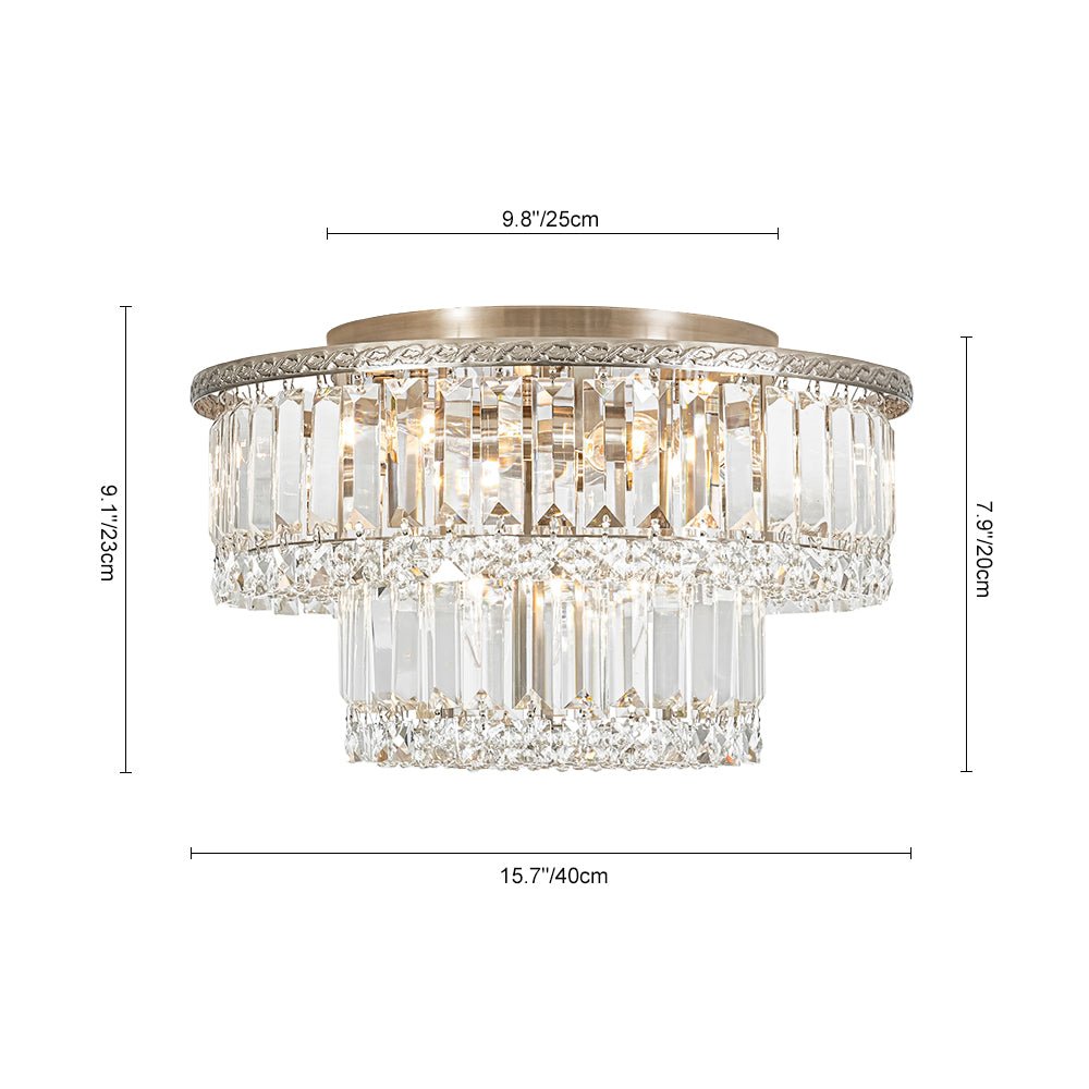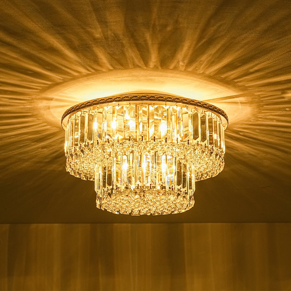 Glam Luxe 2-Tier Crystal Round Semi Flush Mount Light