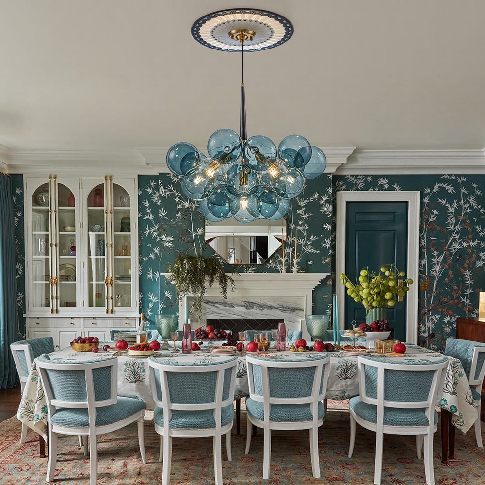 Modern Cluster Blue Glass Globe Bubble Chandelier