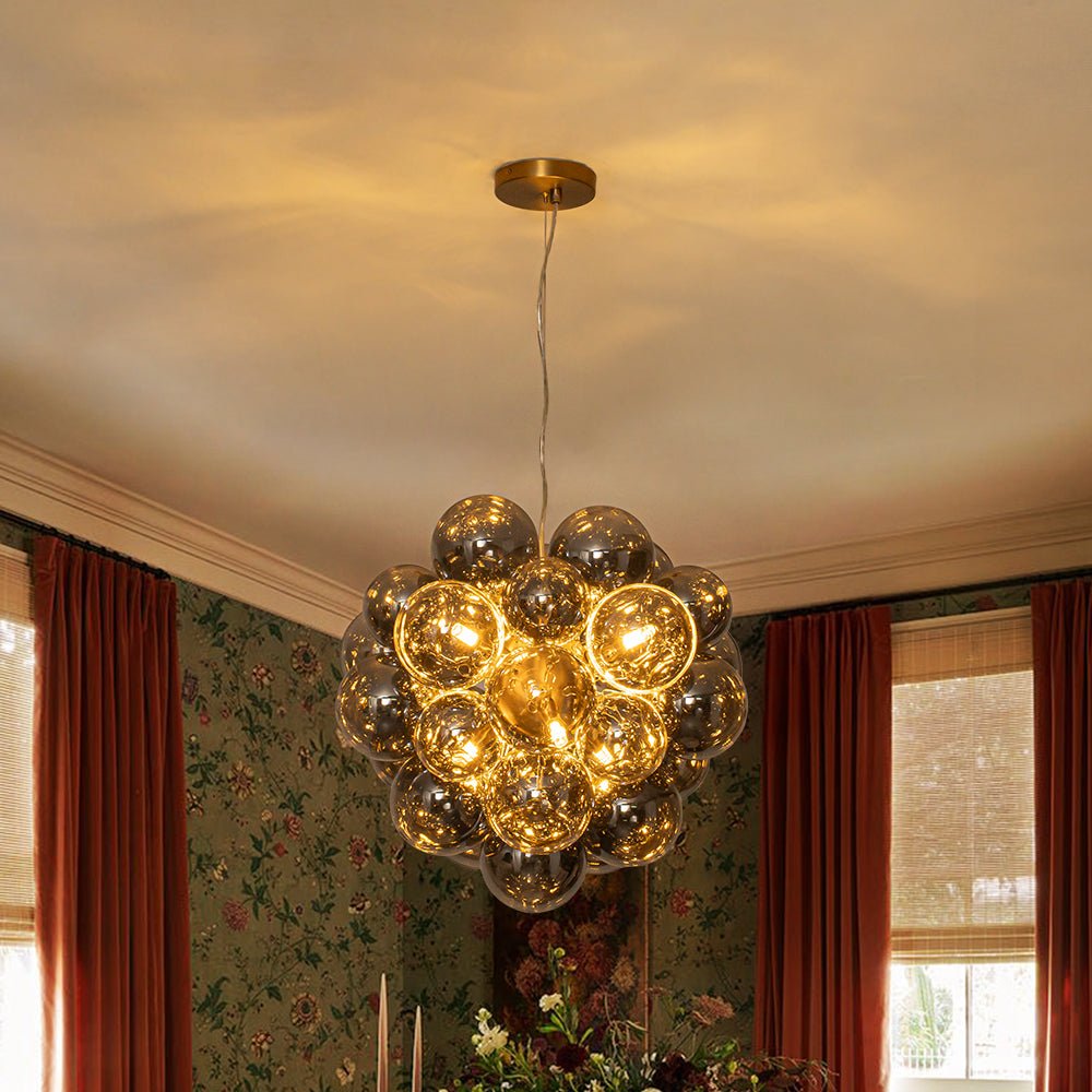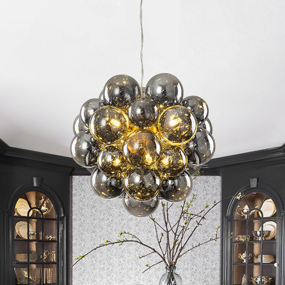 Moody Luxe Cluster Smoked Glass Bubble Sphere Chandelier