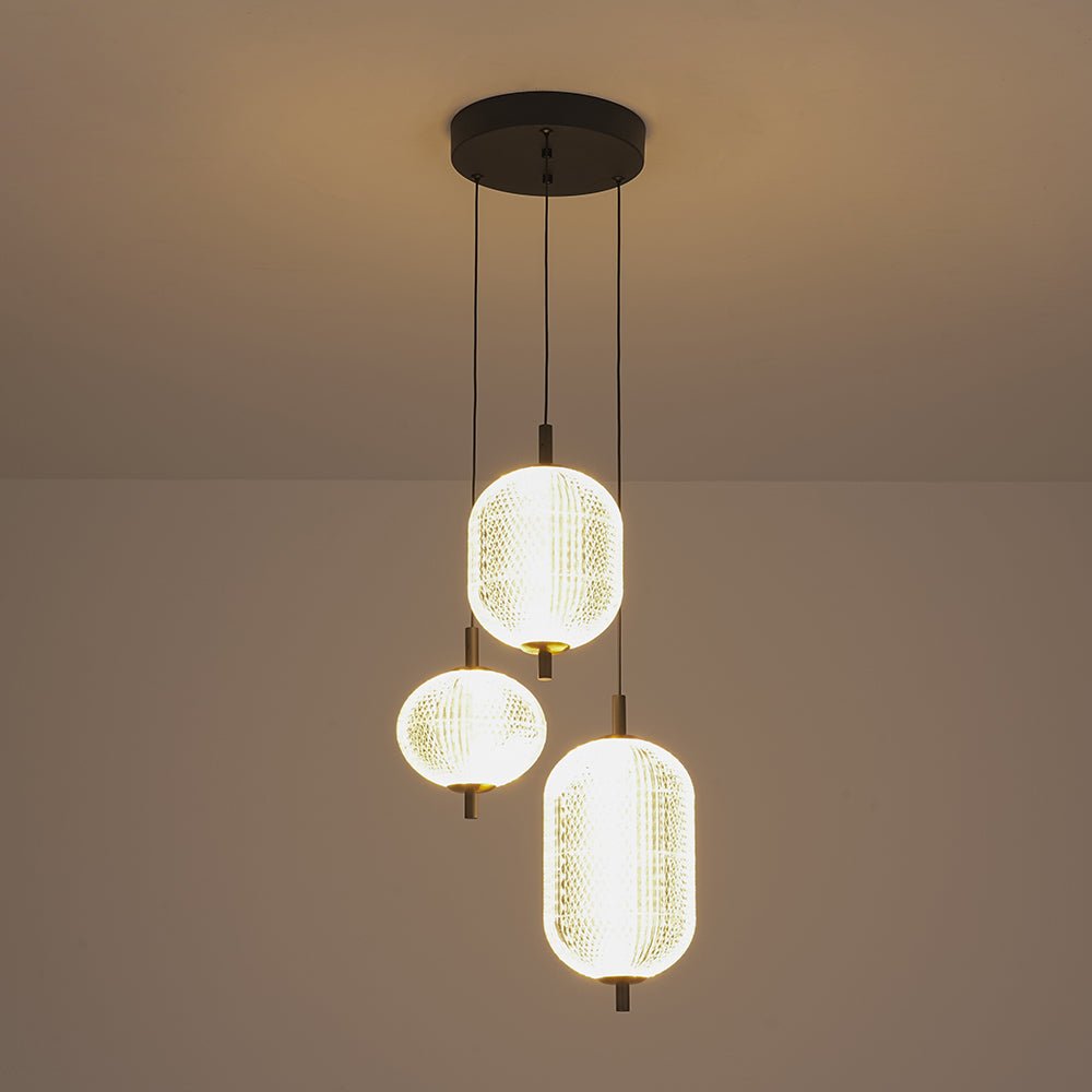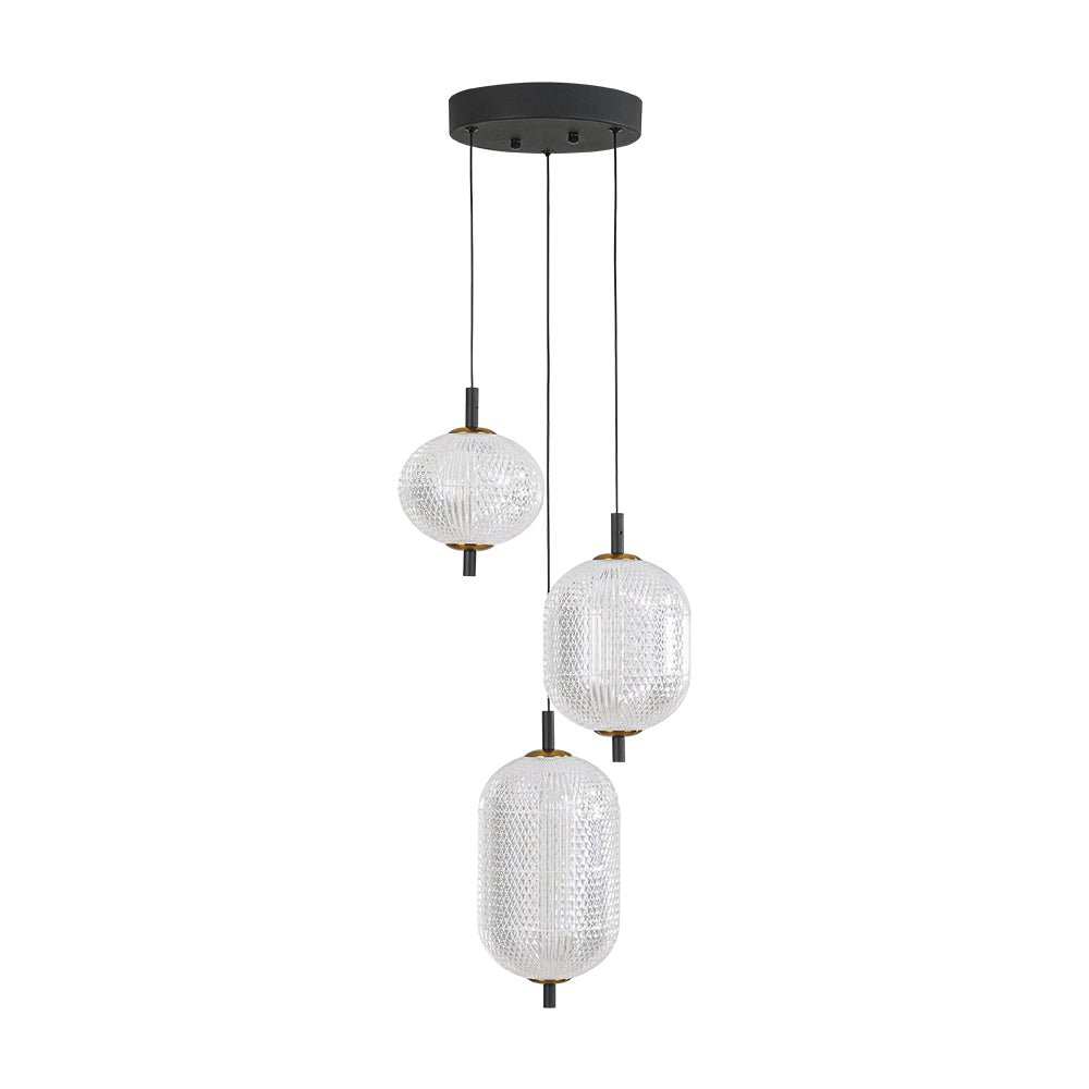 Prismatic Glass Dimmable LED 3-Light Cluster Round Pendant