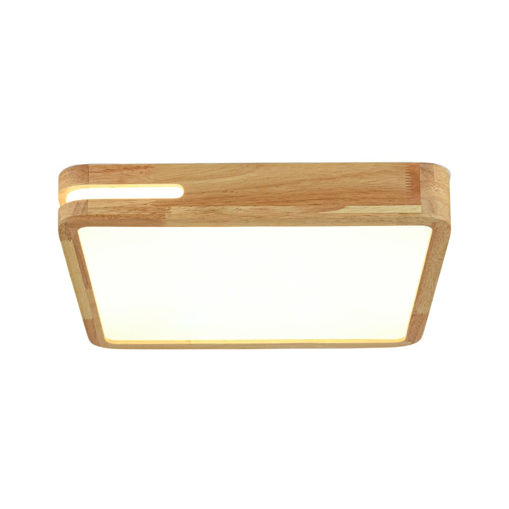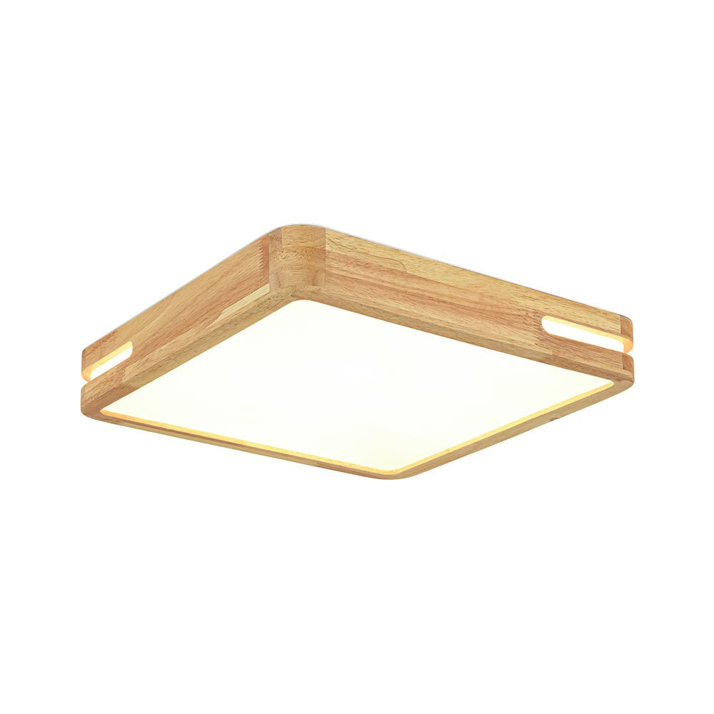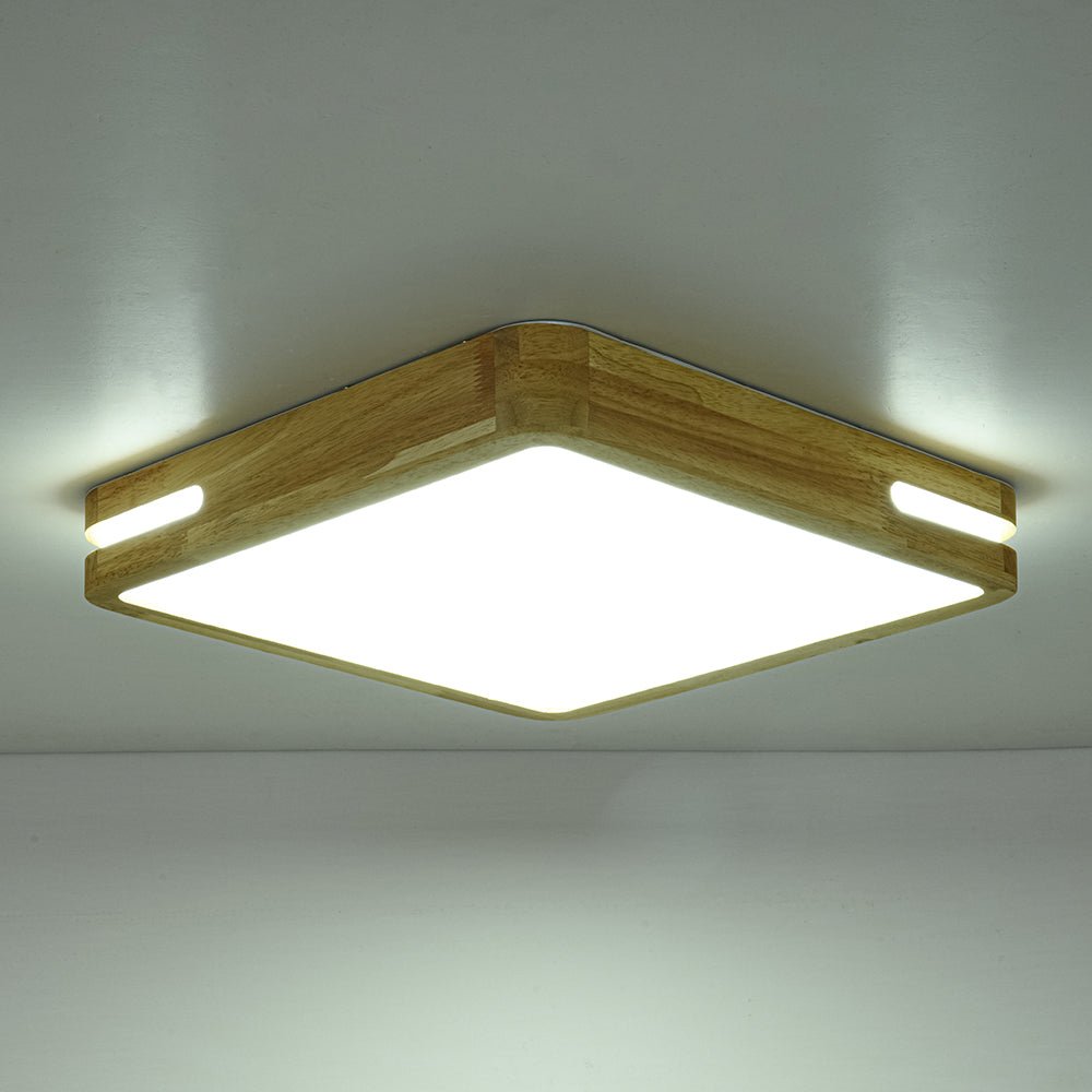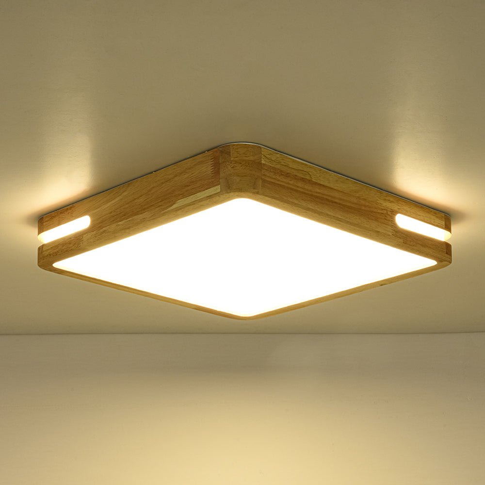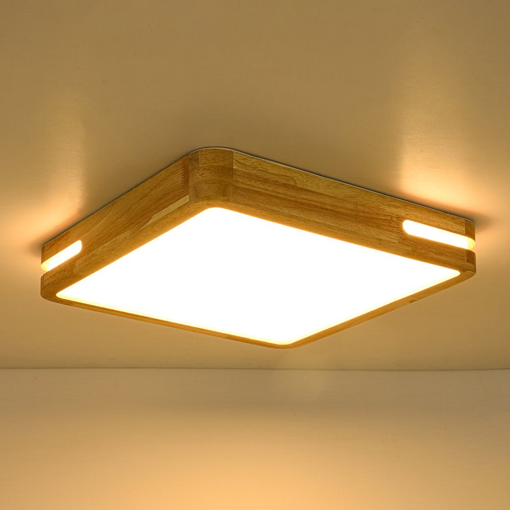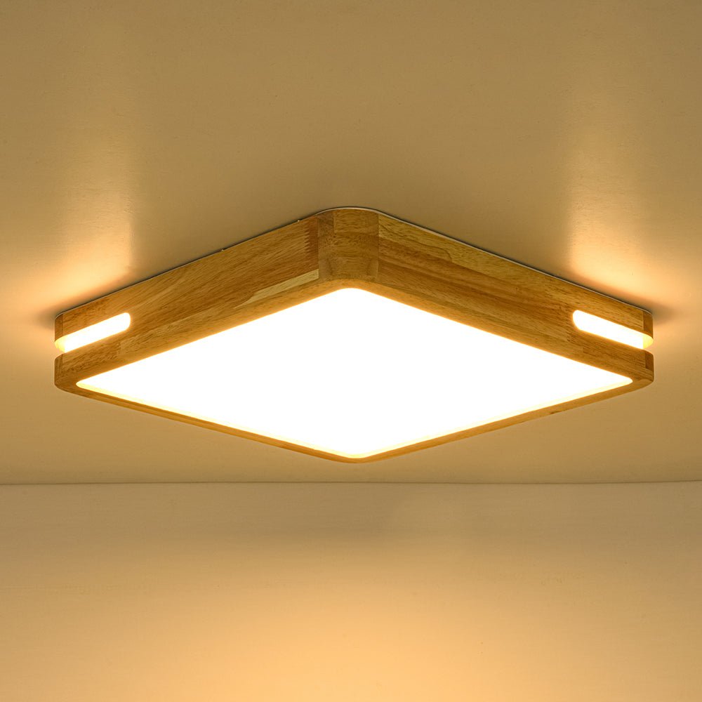 Rustic Dimmable LED Wood Square Flush Mount Light