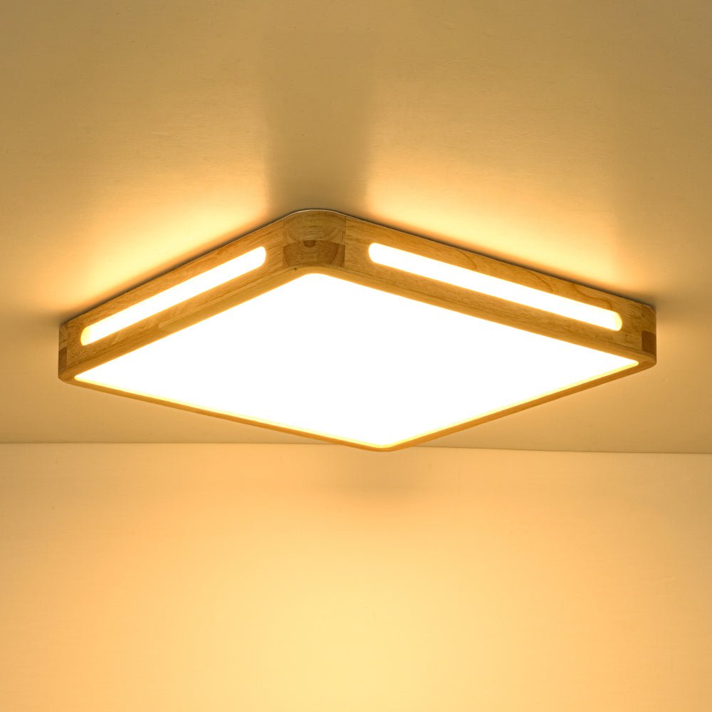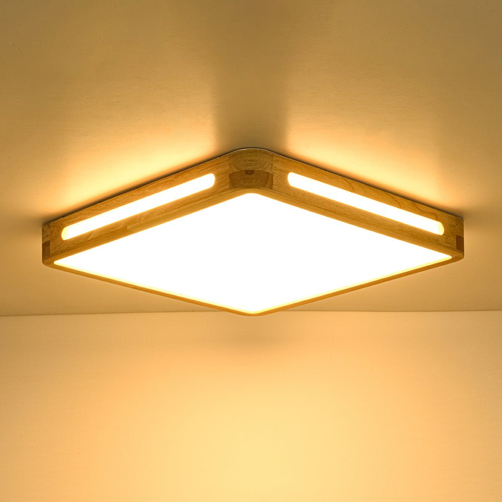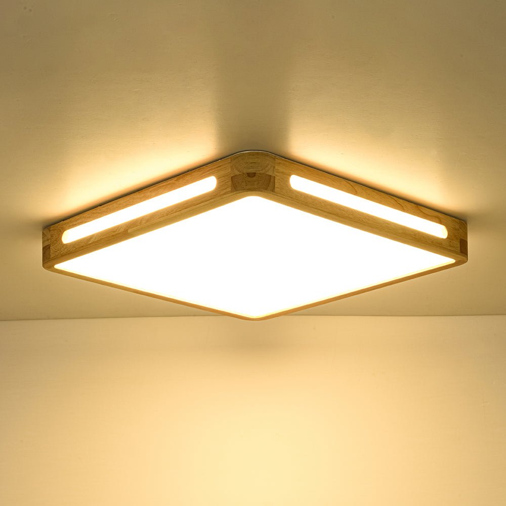 Scandinavian Wooden Dimmable LED Square Flush Mount