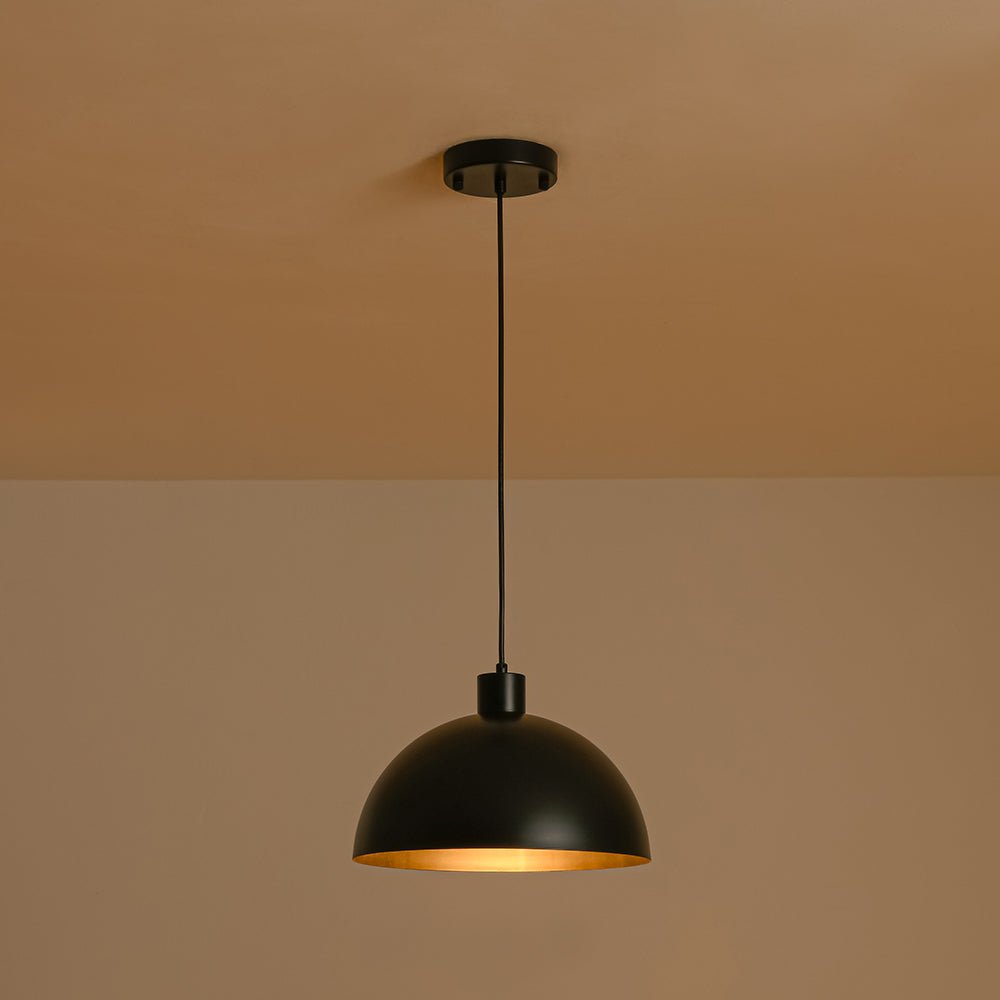 Crafted from sturdy iron, this single pendant light showcases a classic dome silhouette hand-painted in a rich antique bronze exterior, enhanced by subtle brush strokes for added texture and depth. The interior boasts a warm gold tone that beautifully reflects light, creating a soft, inviting glow. Perfect for kitchen islands, dining areas, entryways, reading nooks, or loft-style interiors, this industrial metal dome pendant light blends industrial character with modern sophistication. Hang it solo for focused lighting or in multiples for a bold statement.
