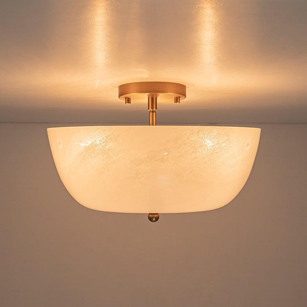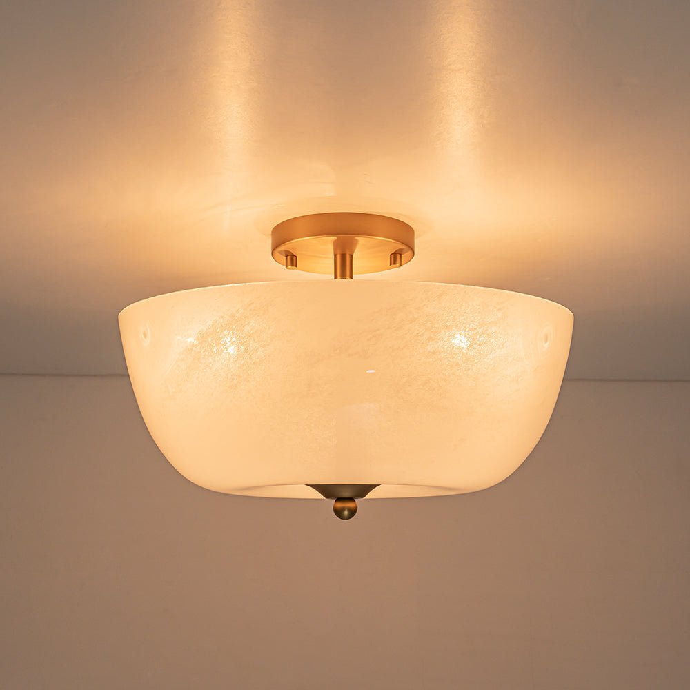 Timeless French elegance meets understated minimalist charm in this glass semi-flush ceiling light. The gently rounded, dome-shaped shade is made from glossy cloudy glass, offering a soft, milky translucence that diffuses light evenly, creating a warm, inviting glow without harsh glare.