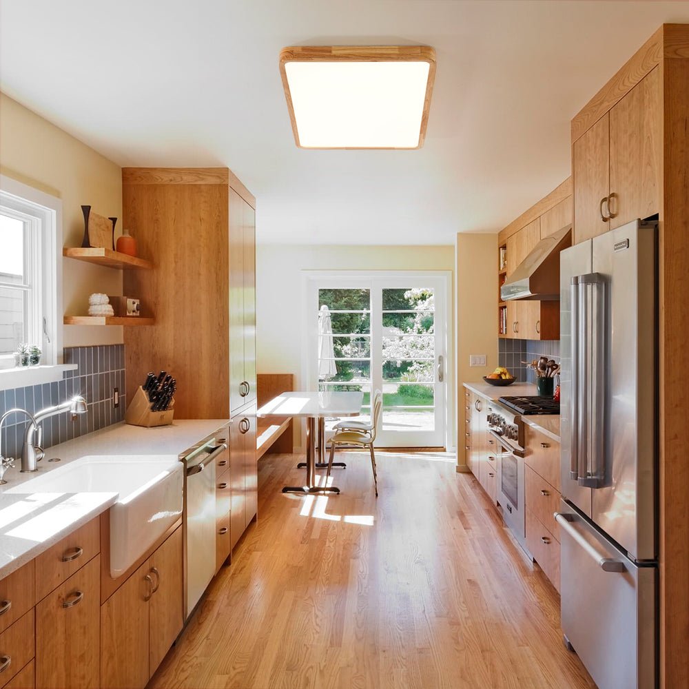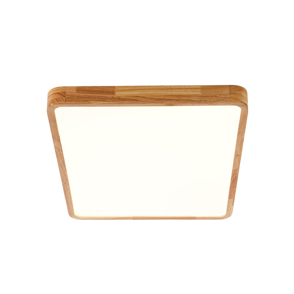 Bring clean lines and natural warmth to your space with this modern rectangular LED flush mount ceiling light. Featuring a minimalist wood-framed design in a natural finish, this fixture combines soft organic textures with high-performance lighting.
