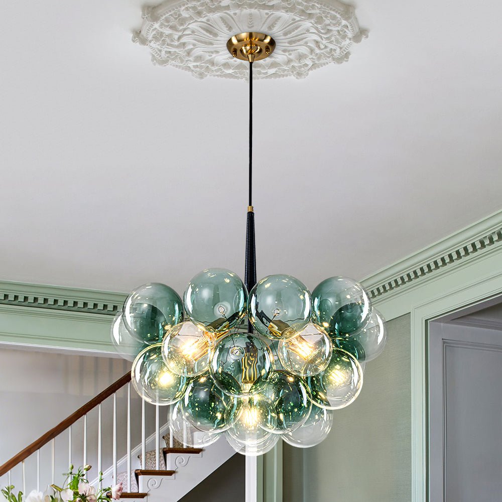 Modern Cluster Gradient Green Glass Globe Bubble Chandelier