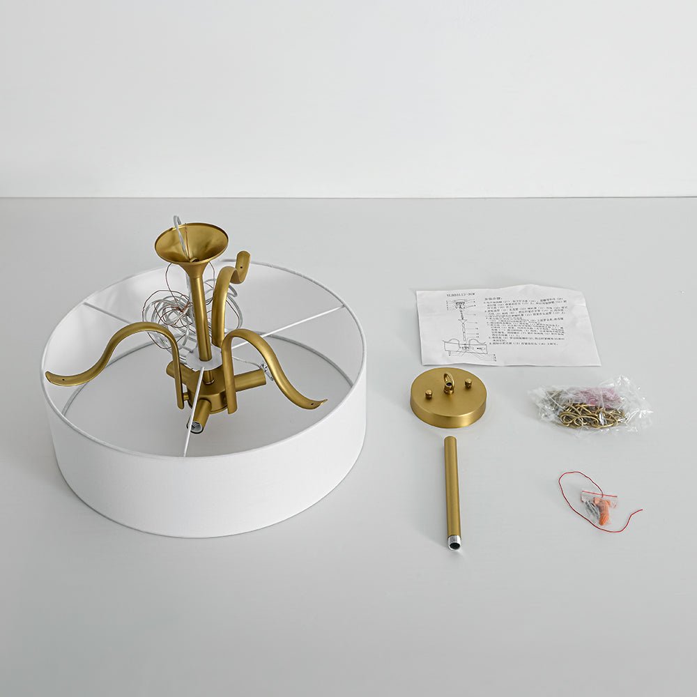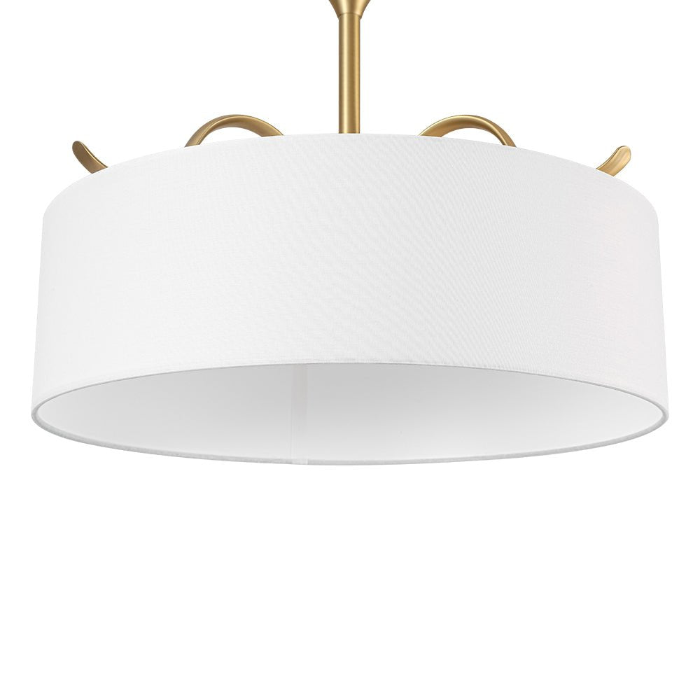 Brass White Fabric Drum Cage Semi Flush Dual Mount Chandelier