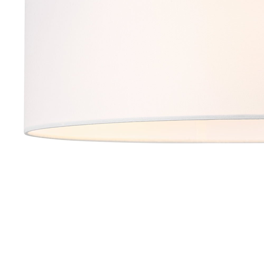 Three Lights • Wide Drum Shape • White Fabric Shade • Dual Mount Design • Brushed Brass • Removable Chain • E12 Candelabra Bulbs (Not Included) • Hardwired • UL Listed/ETL