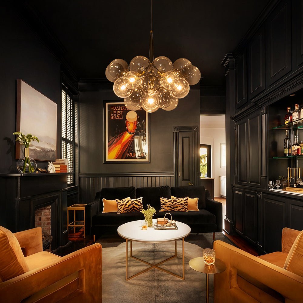 Make a striking yet tranquil impression with this colored glass globe bubble chandelier. Suspended from a sleek central metal rod with six sockets, each transparent smoked glass globe appears to hover effortlessly, creating a captivating cluster effect. The subtle gradientāfrom deeper gray at the top to lighter at the baseāadds depth and dimension, enhancing the chandelierās sculptural form with a moody, luxurious elegance. When lit, the globes diffuse a warm, gentle glow that balances functional illumination with soft, atmospheric ambiance.