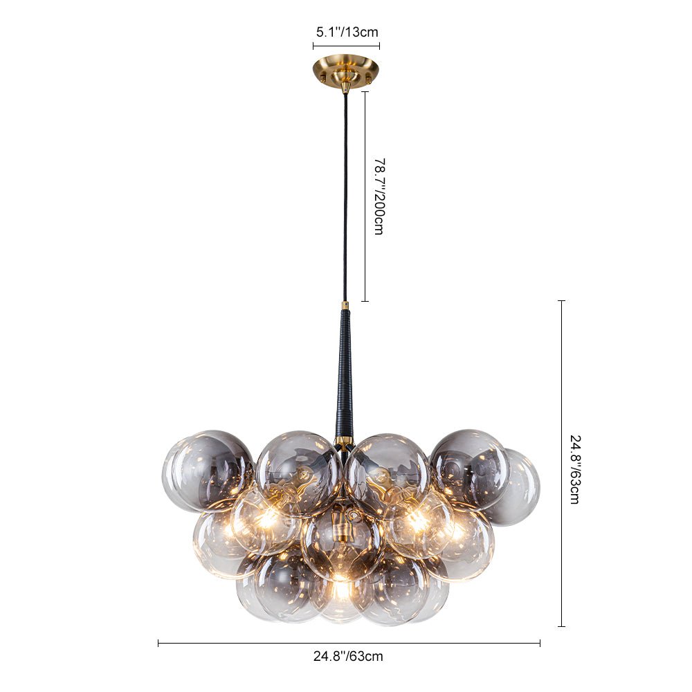Modern Cluster Gradient Gray Glass Globe Bubble Chandelier