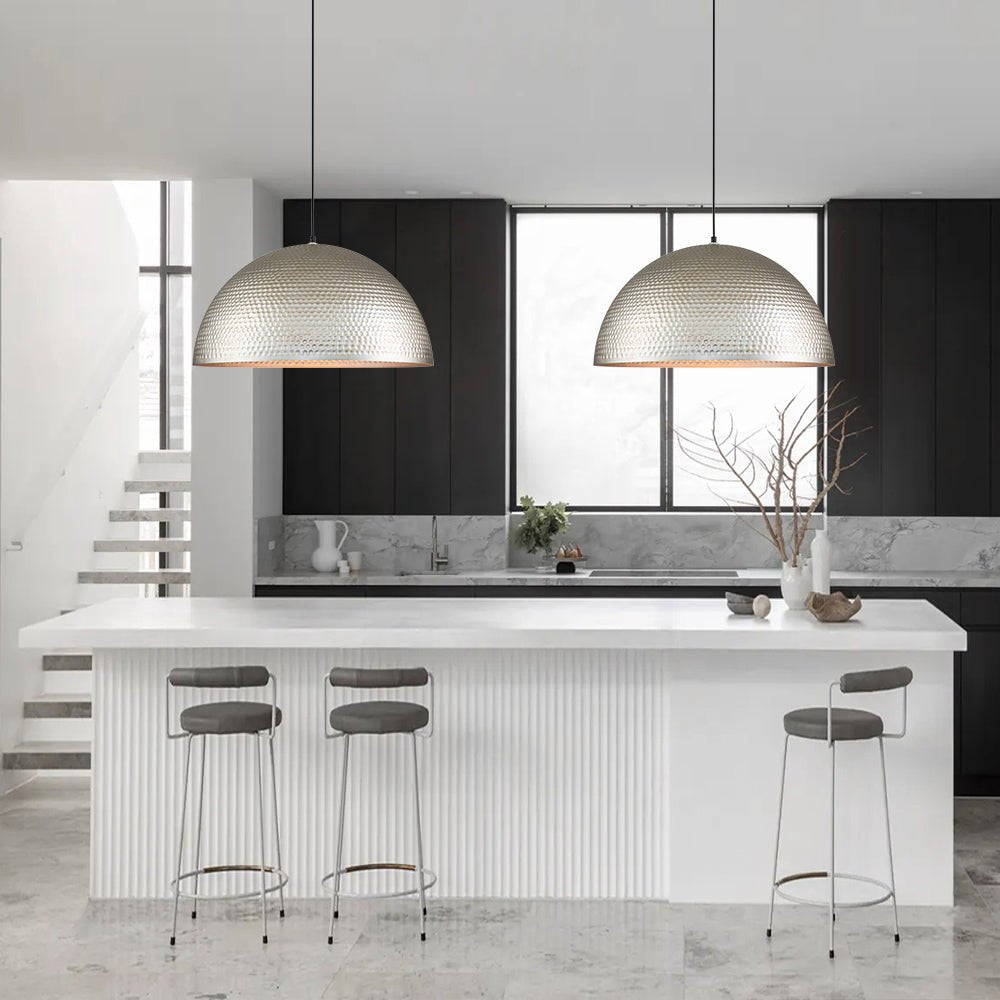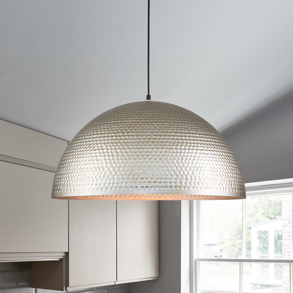- Oversize hammered metal dome shade