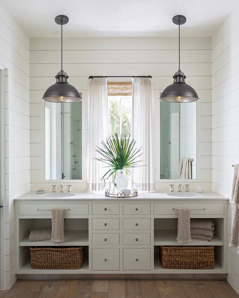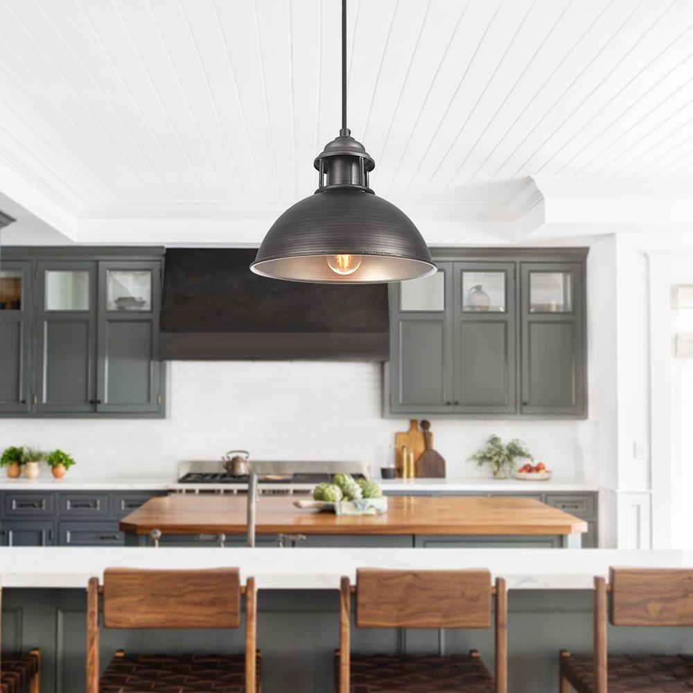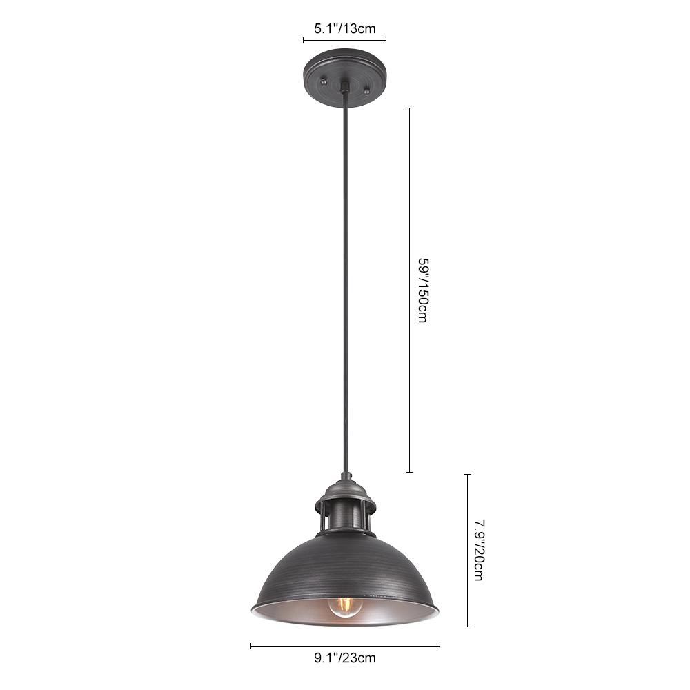 This single pendant light provides a sleek pendant in an antiqued silver finish that will add a powerful accent to your industrial, contemporary, urban, or transitional arrangements. A dome shade that is inspired by the traditional pot lid holds one 60W E26/E27 medium-base bulb (not included) that casts task lighting downward. If needed, this pot lid pendant is compatible with a dimmer switch and dimmable bulb (both not included) for optimal lighting to your desired ambiance. Hanging by an adjustable cable, this single pot lid pendant adjusts most ceiling height. Measuring 9.1in (23cm) in diameter, this industrial dome pendant looks nice to hang on its own or in multiples. Illuminate your kitchen counter, dining table, entryway, and foyer with this industrial dome pendant.Ā