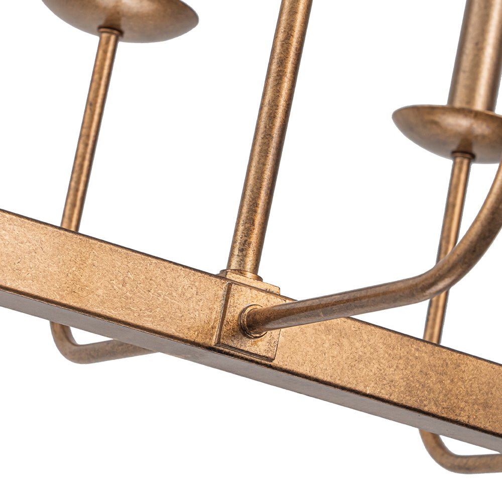 This candle style linear island chandelier comes in two stylish vintage-inspired finishes—distressed gold for a refined, luxurious touch, and oil-rubbed bronze for a warm earthy charm with traditional farmhouse character.