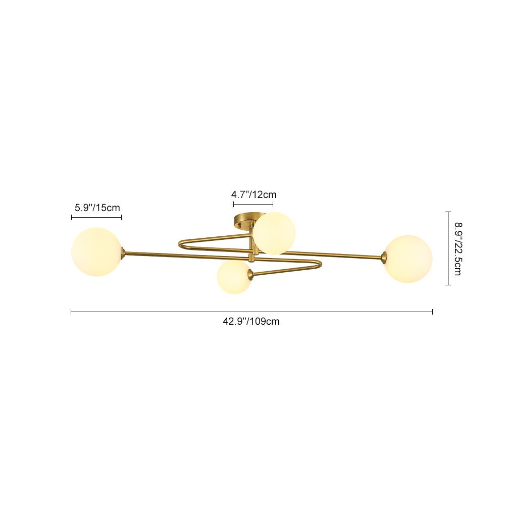 4-Light Frosted Glass Globe Linear Sputnik Semi Flush Mount