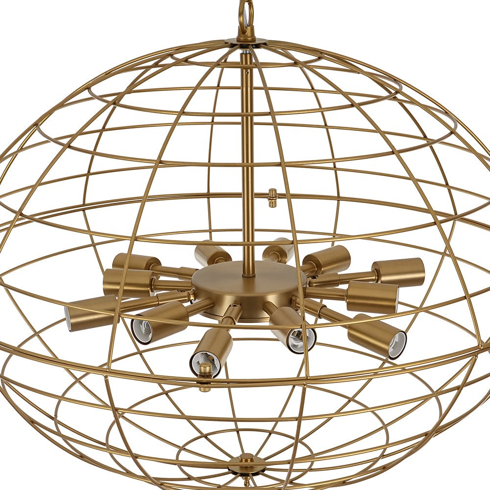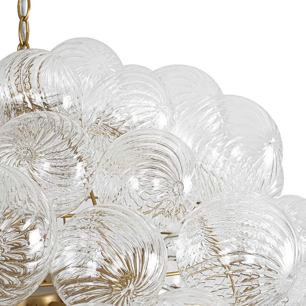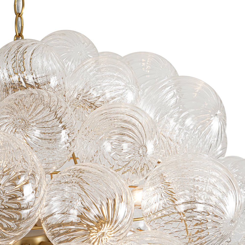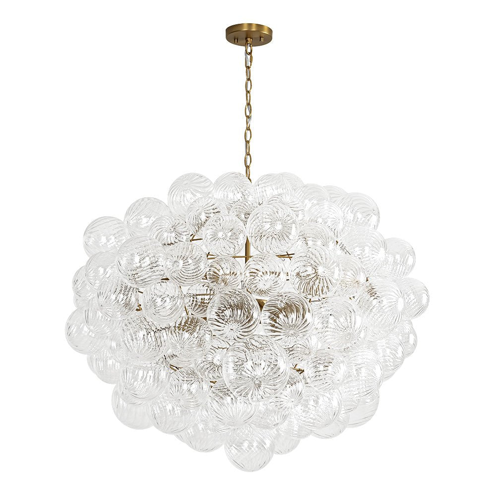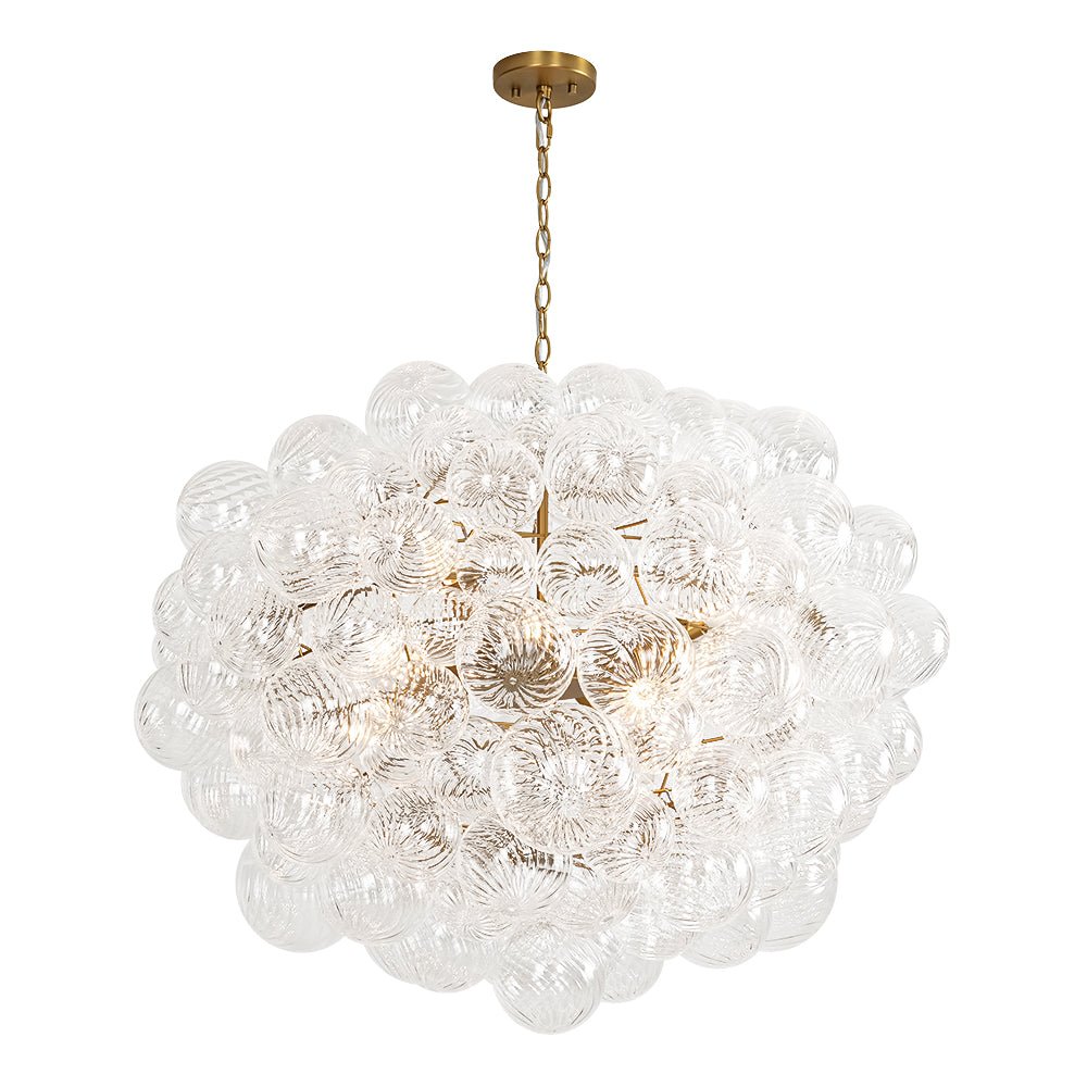 Twelve Lights ⢠Sphere Framework ⢠Ribbed Glass Globes ⢠Bubble Style ⢠Brushed Brass Finish ⢠E12 Candelabra Bulbs (Not Included) ā¢Ā Hardwired ⢠UL Listed/ETL