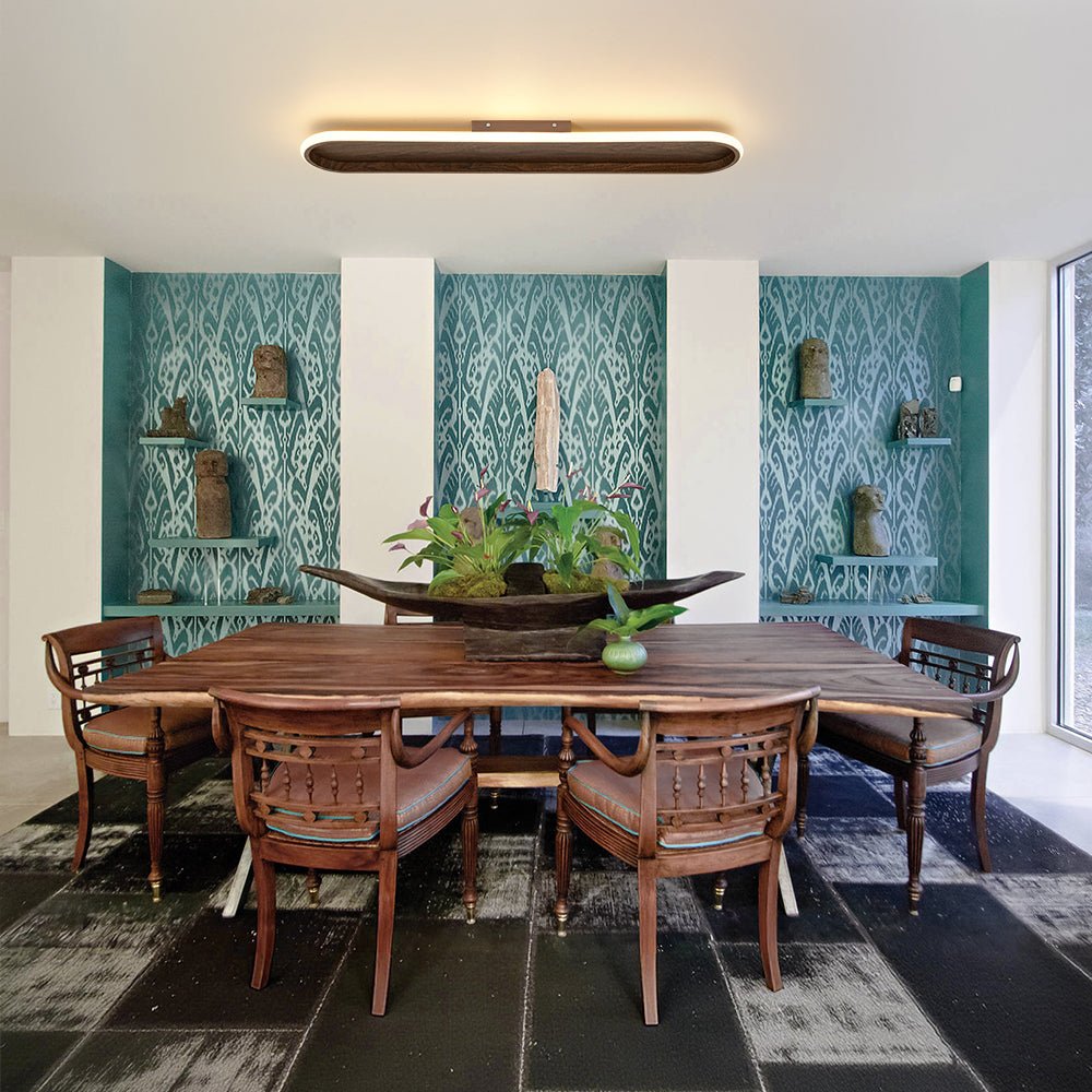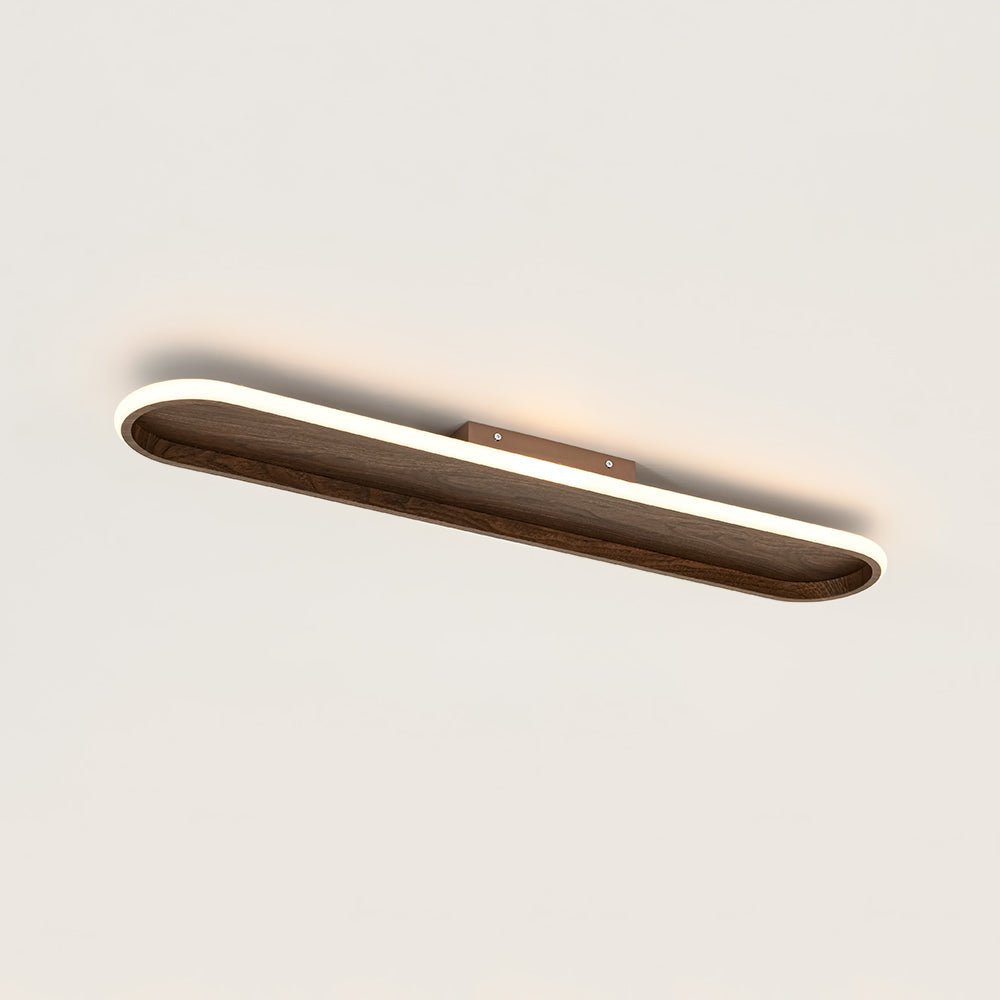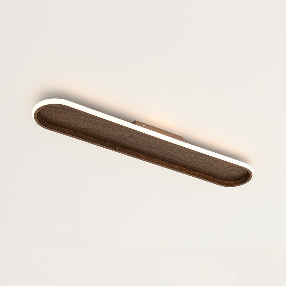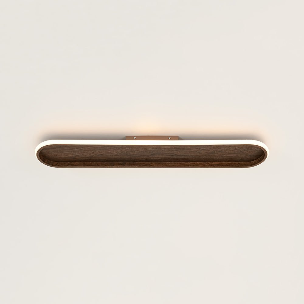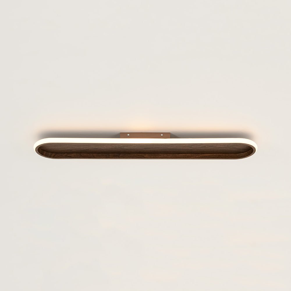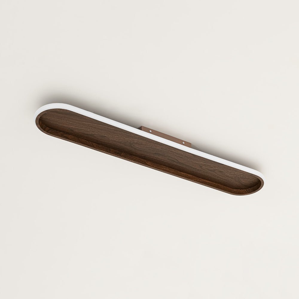 Blending clean minimalism with modern farmhouse warmth, this sleek LED flush mount ceiling light offers a refined balance of style and performance. Its ultra-slim, elongated oval profile features a rustic walnut-grain base framed by a smooth white ring diffuser, creating rich visual contrast that complements vintage, rustic, and barn-inspired interiors. When illuminated, the high-efficiency integrated LEDs shine through the frosted acrylic diffuser to deliver a soft 3000K warm glow with 950 lumens of comfortable, even light. Fully compatible with standard 110V dimmer switches (not included), this linear LED semi flush mount light allows effortless brightness control to match any mood or moment. Easy to install and thoughtfully designed, this versatile wood grain oval LED flush mount is a polished lighting solution for living rooms, kitchens, hallways, offices, and beyond—bringing understated elegance and reliable illumination to everyday spaces.