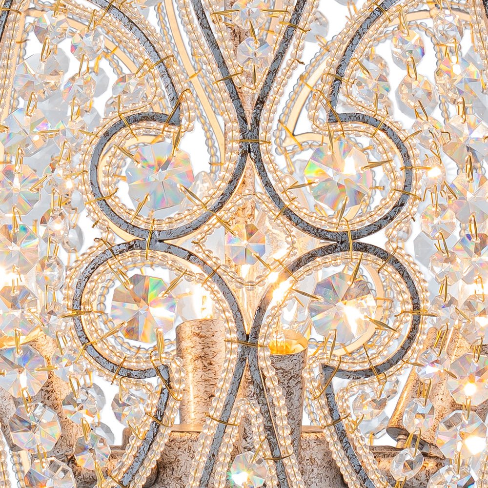 Glam Shabby Chic Crystal Globe Chandelier Distressed Silver