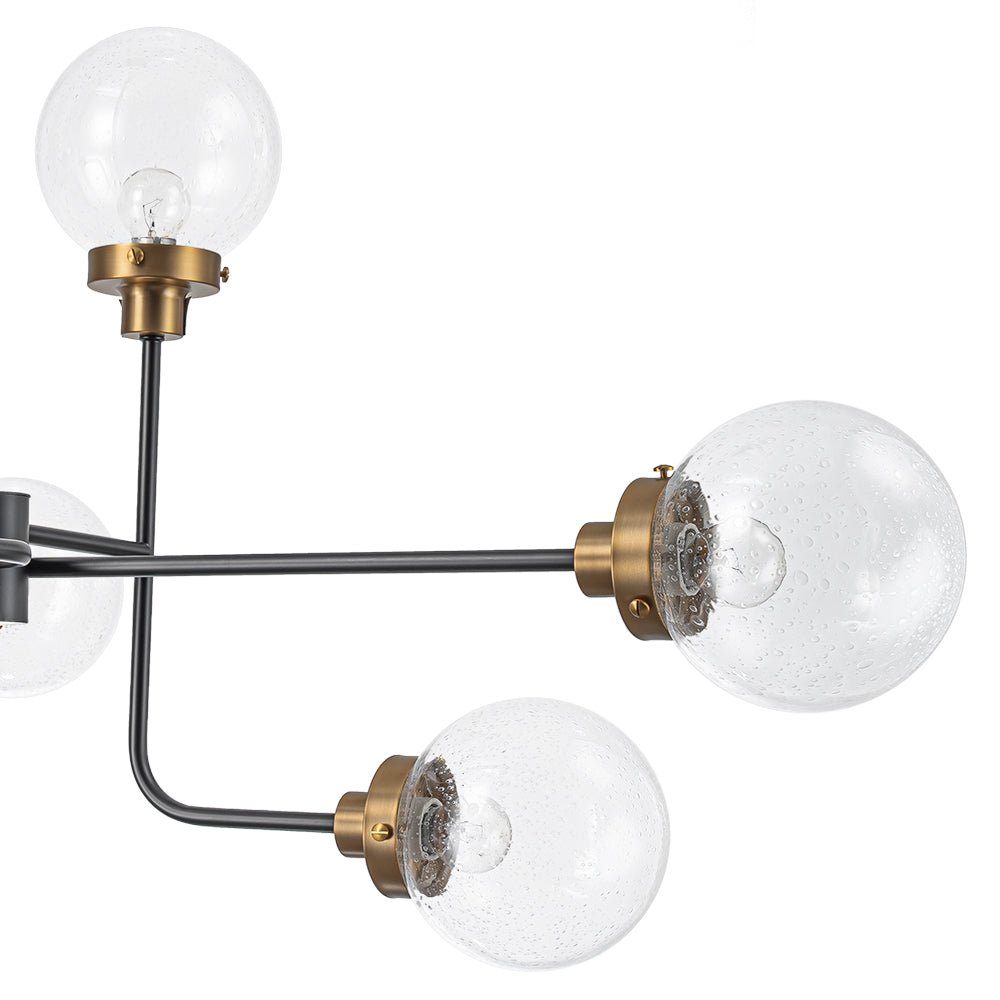Eight Lights • Linear Sputnik Design • Bubble Style • Seeded Glass Balls • Black + Brass Finish • E26 Medium-Base Bulbs (Not Included) • Hardwired • ETL/UL Listed