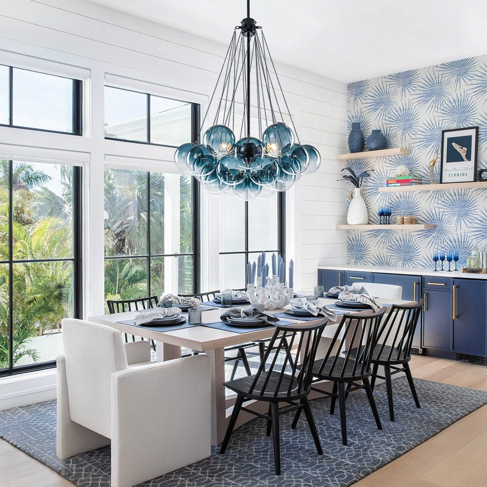 Versatile in style, this cluster colorful glass globe chandelier complements Modern Mid-Century, Contemporary, Transitional, Luxury, or Artistic interiors. Perfect for living rooms, dining areas, stairwells, entryways, bathrooms, or high-ceiling spaces, it transforms any setting into a conversation-worthy centerpiece where light and form meet in perfect harmony.