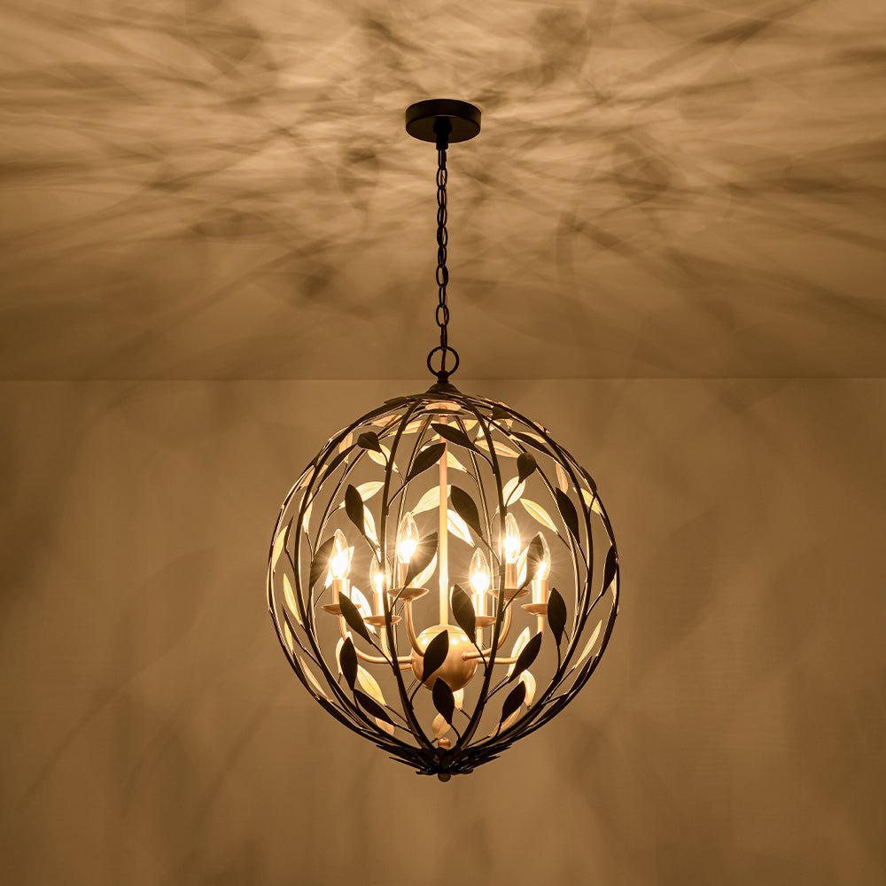 Black Gold Candle Style Leaf Vine Iron Orb Chandelier