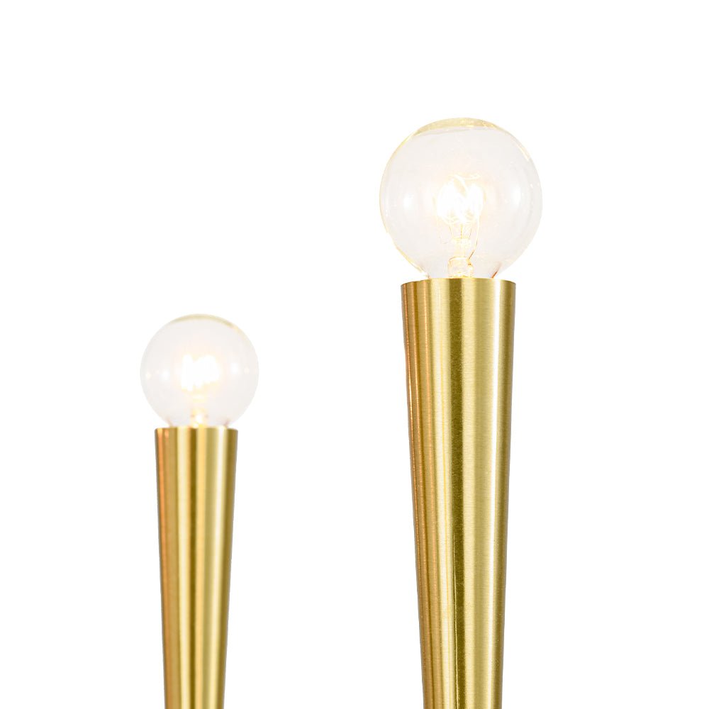 Six/Nine Lights • Tiered Design • Graceful Minimalism • Elegant Curved Arms • Candle Style • Brushed Brass • E12 Candelabra Bulbs (Not Included) • Hardwired • ETL