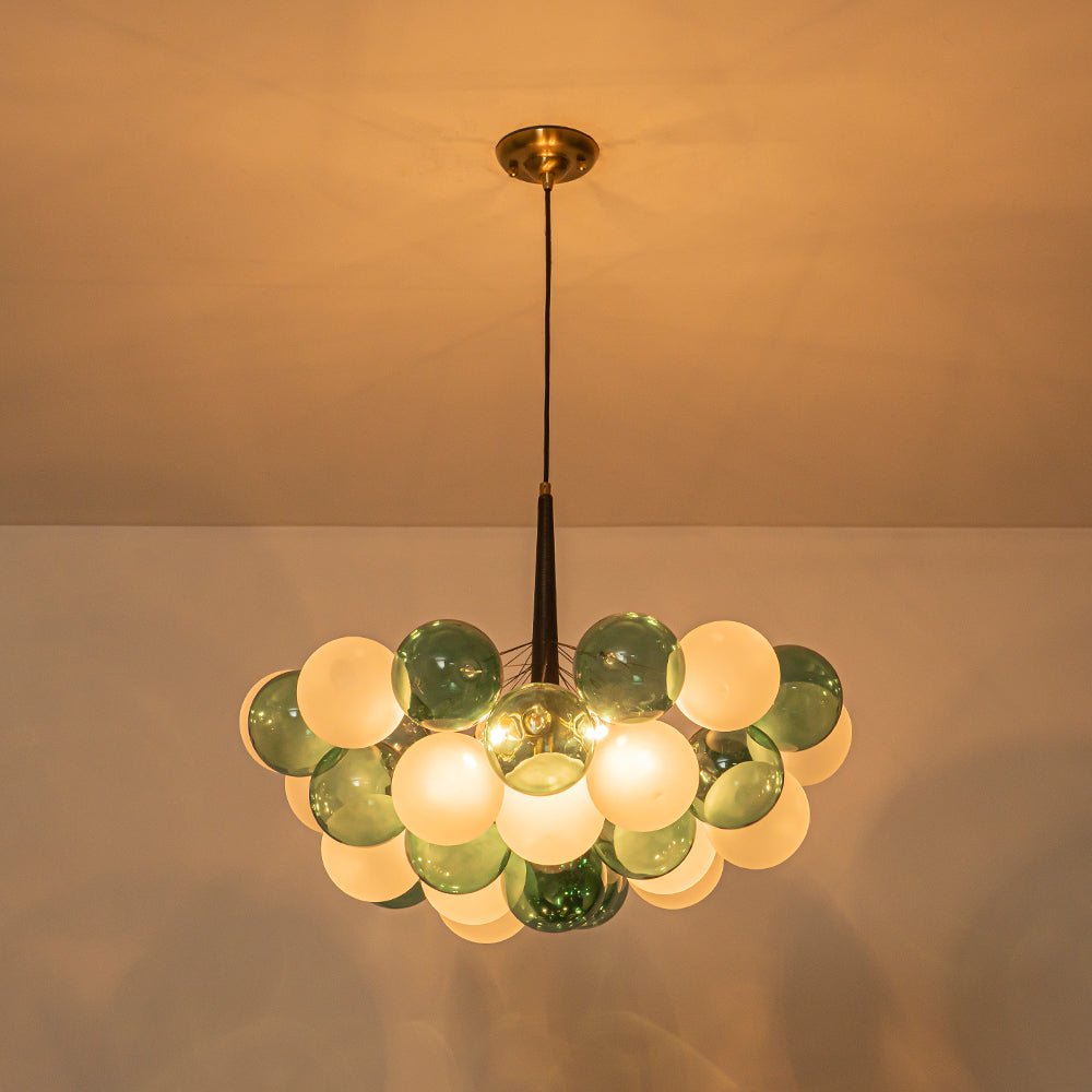 Art Deco Cluster Green Frosted White Glass Bubble Chandelier