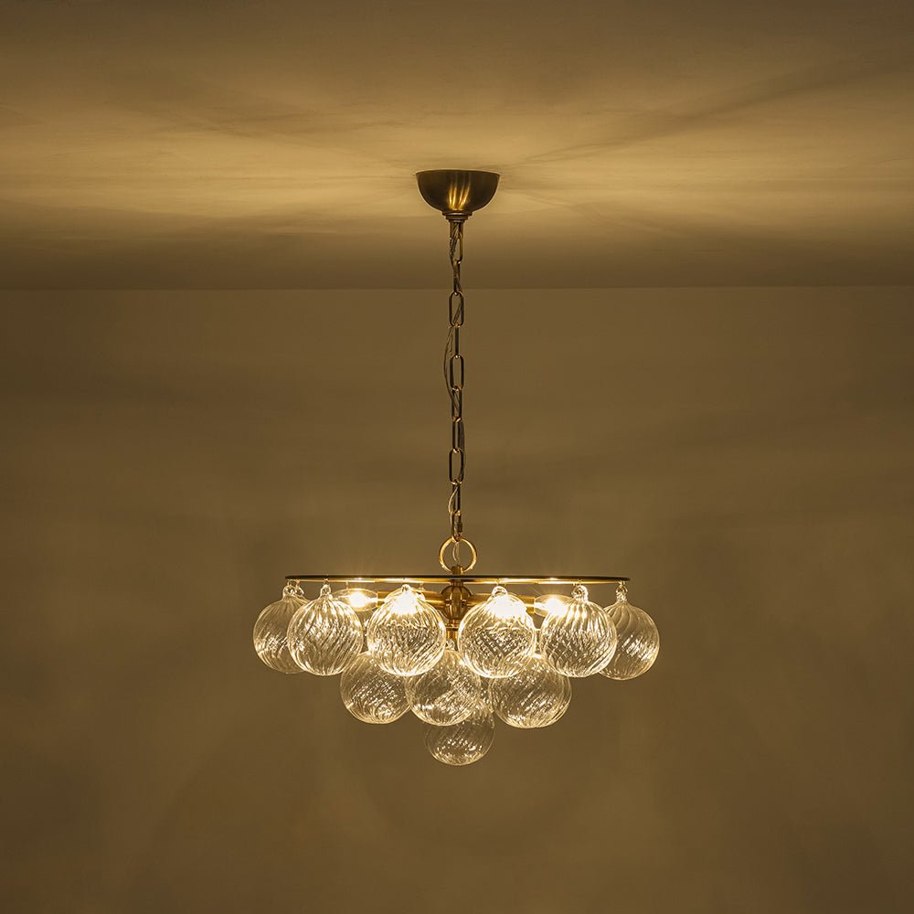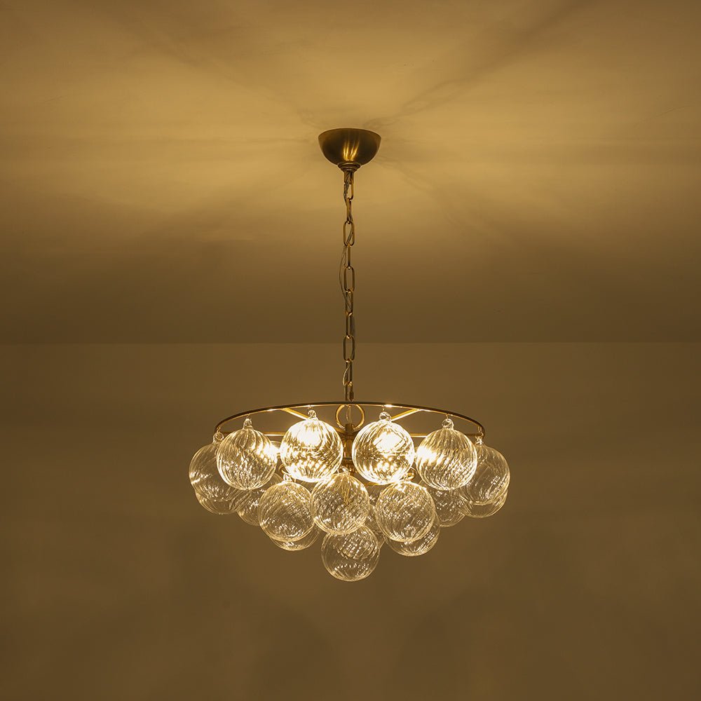 Cluster Ribbed Glass Globe Bubble Round Tiered Chandelier