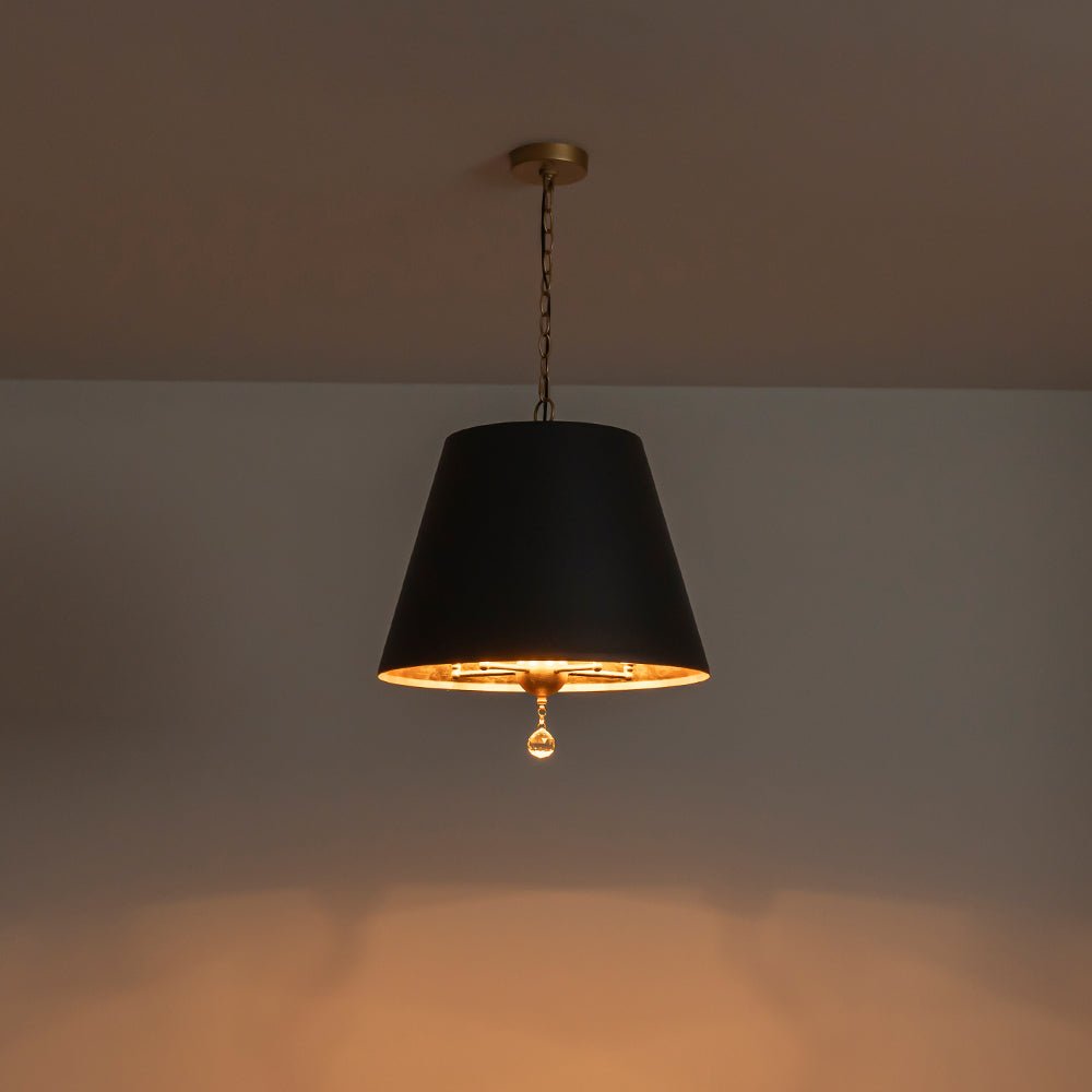French Vintage Black Gold Iron Drum Cage Chandelier