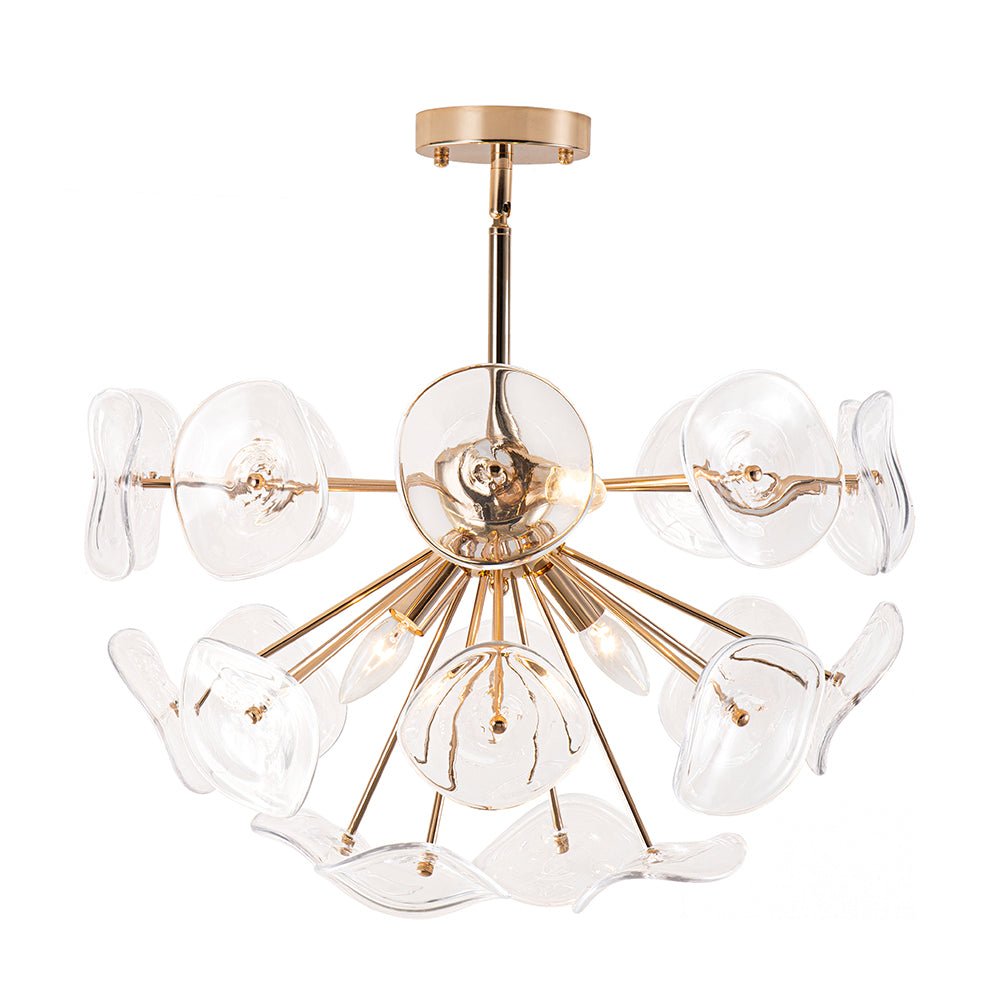 Morning Glory Glass Bloom Sunburst Semi Flush Chandelier