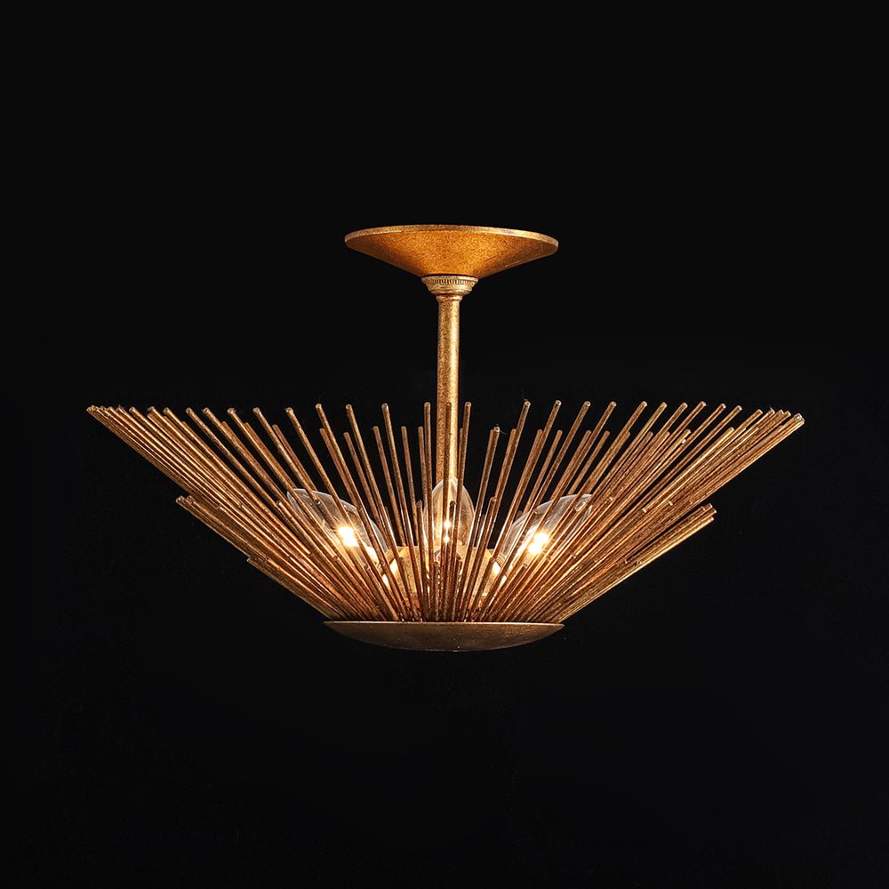 Radiant Antique Gild Gold Foiled Sunburst Round Semi Flush Mount
