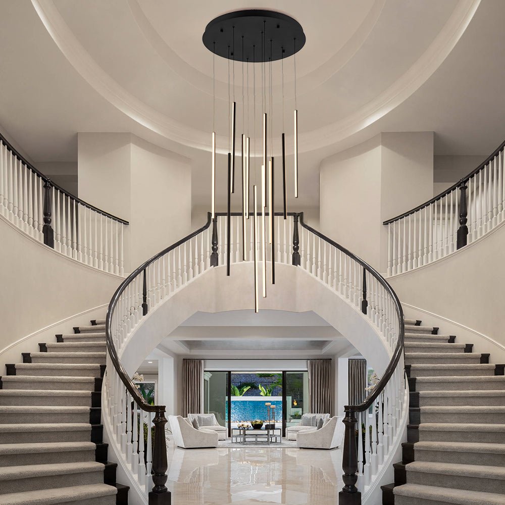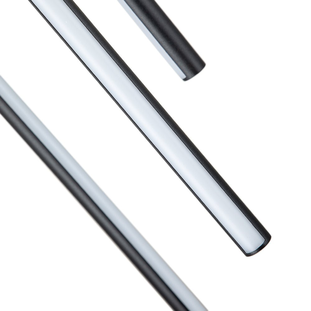 This LED light fixture is an excellent sample that brings minimalist elements to a dramatic and fashionable level. Finished in matte black, this cluster LED chandelier features 12 slim tubes hanging from a wide round canopy. Striking but not overwhelming, this LED hanging light lends a great result perfect for those contemporary home decor. Develop your entry, hall, living room, dining room, or bedroom with this 12-light black cluster tube LED pendant light.
