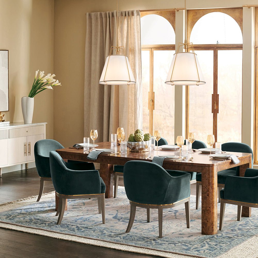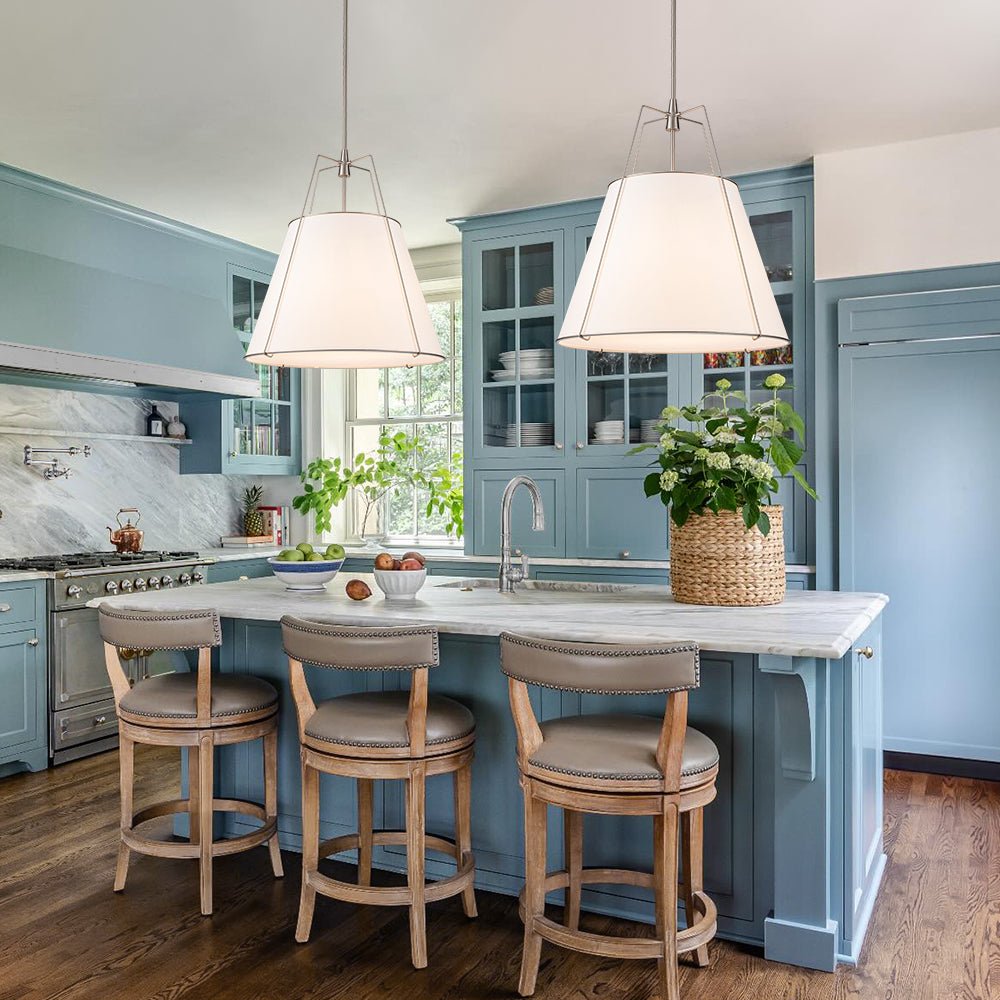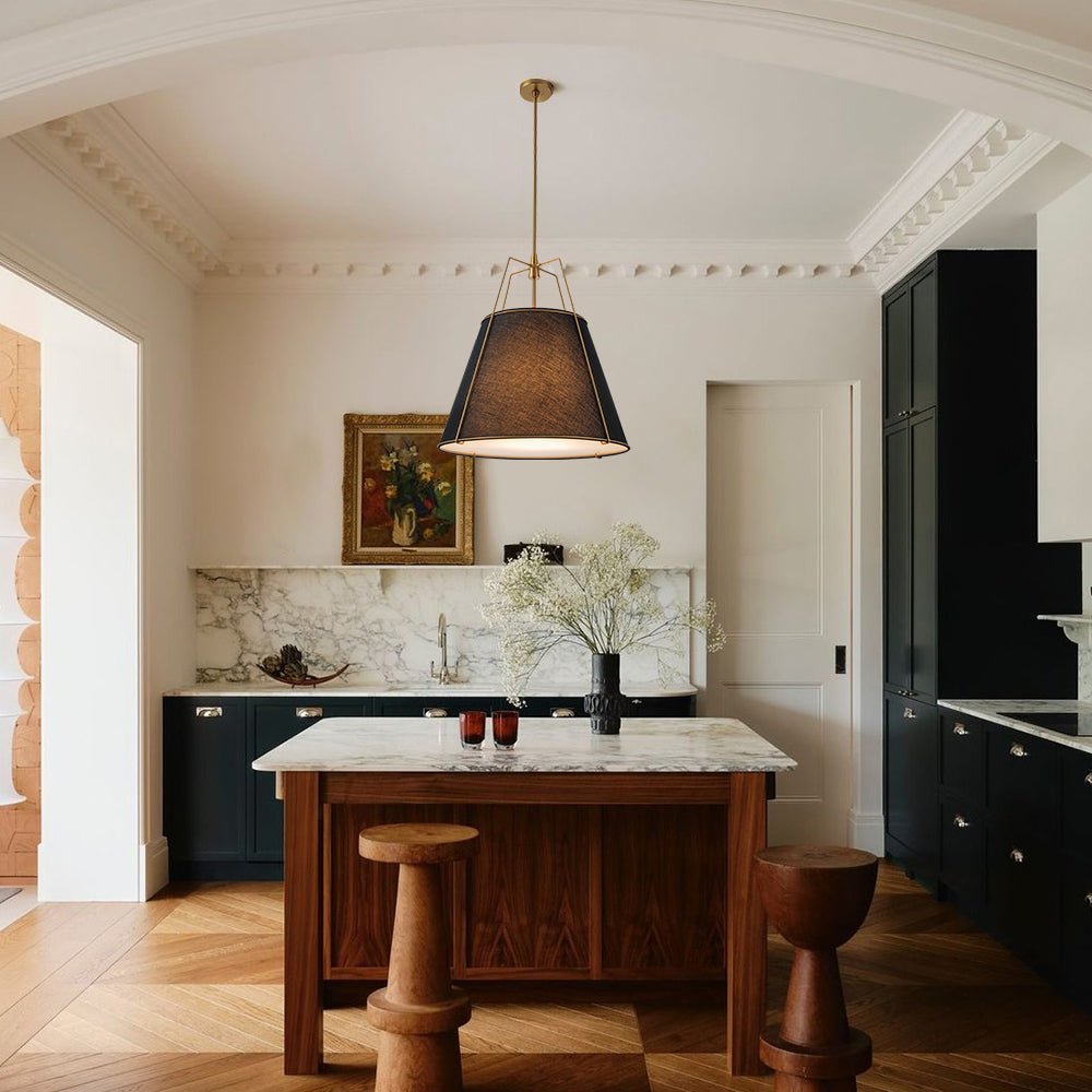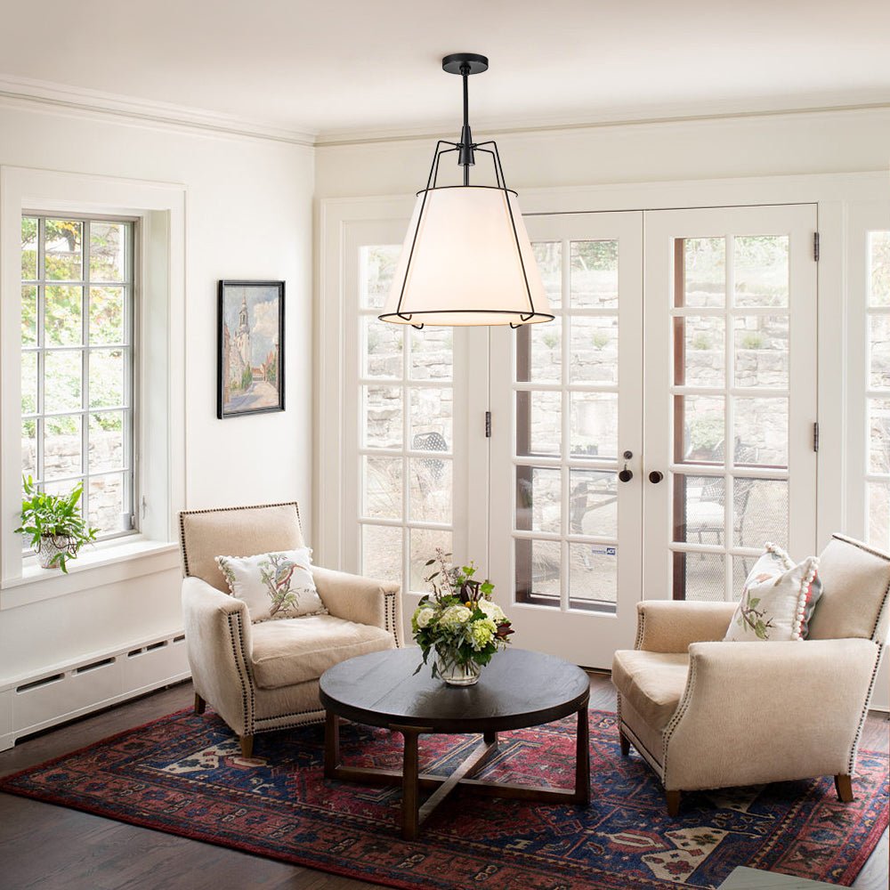 Elegant and sophisticated, our 4-light lantern pendant light brings a captivating presence, ideal for elevating any home decor, whether modern farmhouse or contemporary. Crafted from durable metal with a stunning brushed brass finish, this lantern chandelier features a conical frame that supports a coordinating fabric shade. Available in white or black fabric options, this conical cage pendant light accommodates four E12 candelabra bulbs (bulbs not included), casting an inviting ambient glow. Perfect for transforming living rooms, bedrooms, foyers, or dining areas, this fabric drum cage pendant light adds a refreshing touch of style.